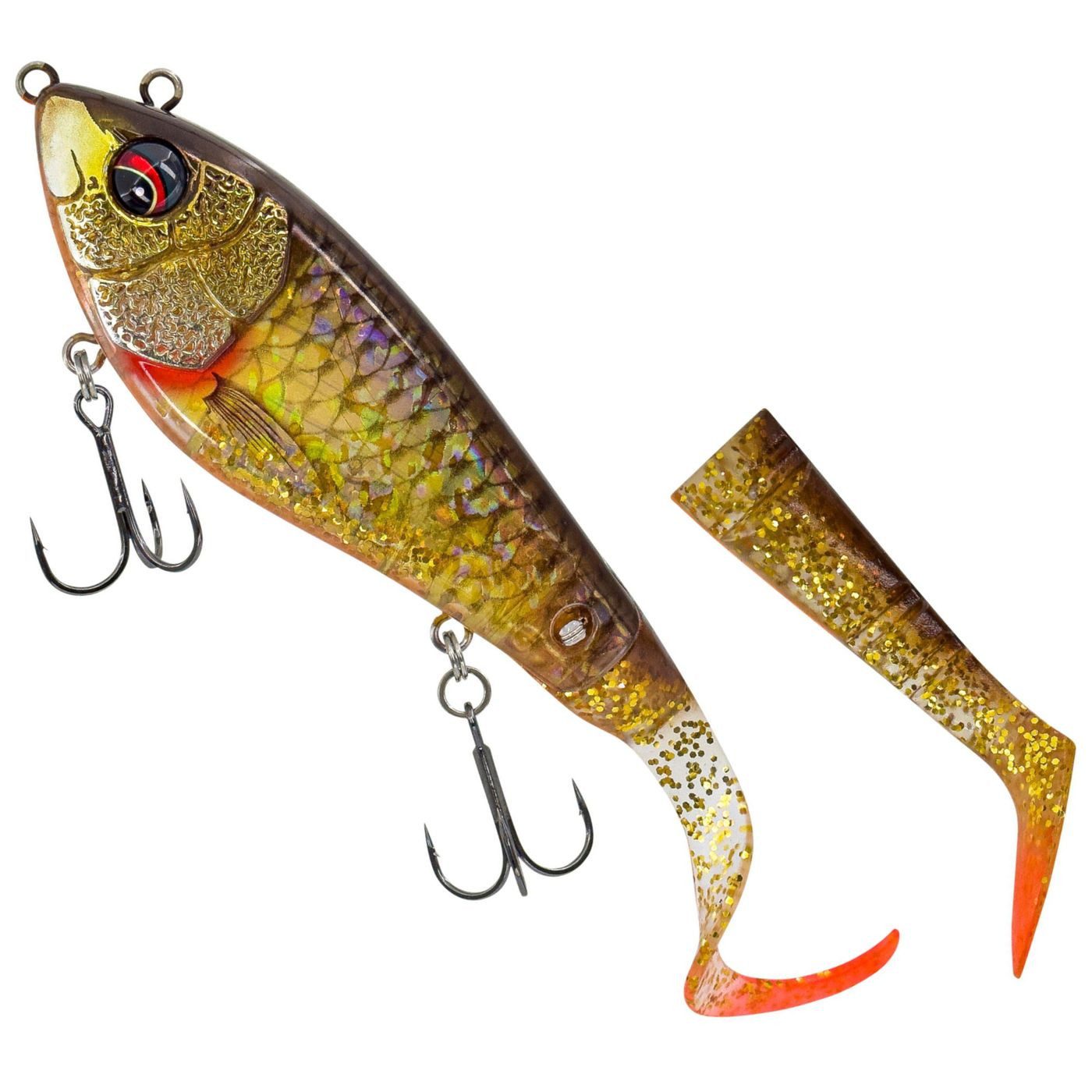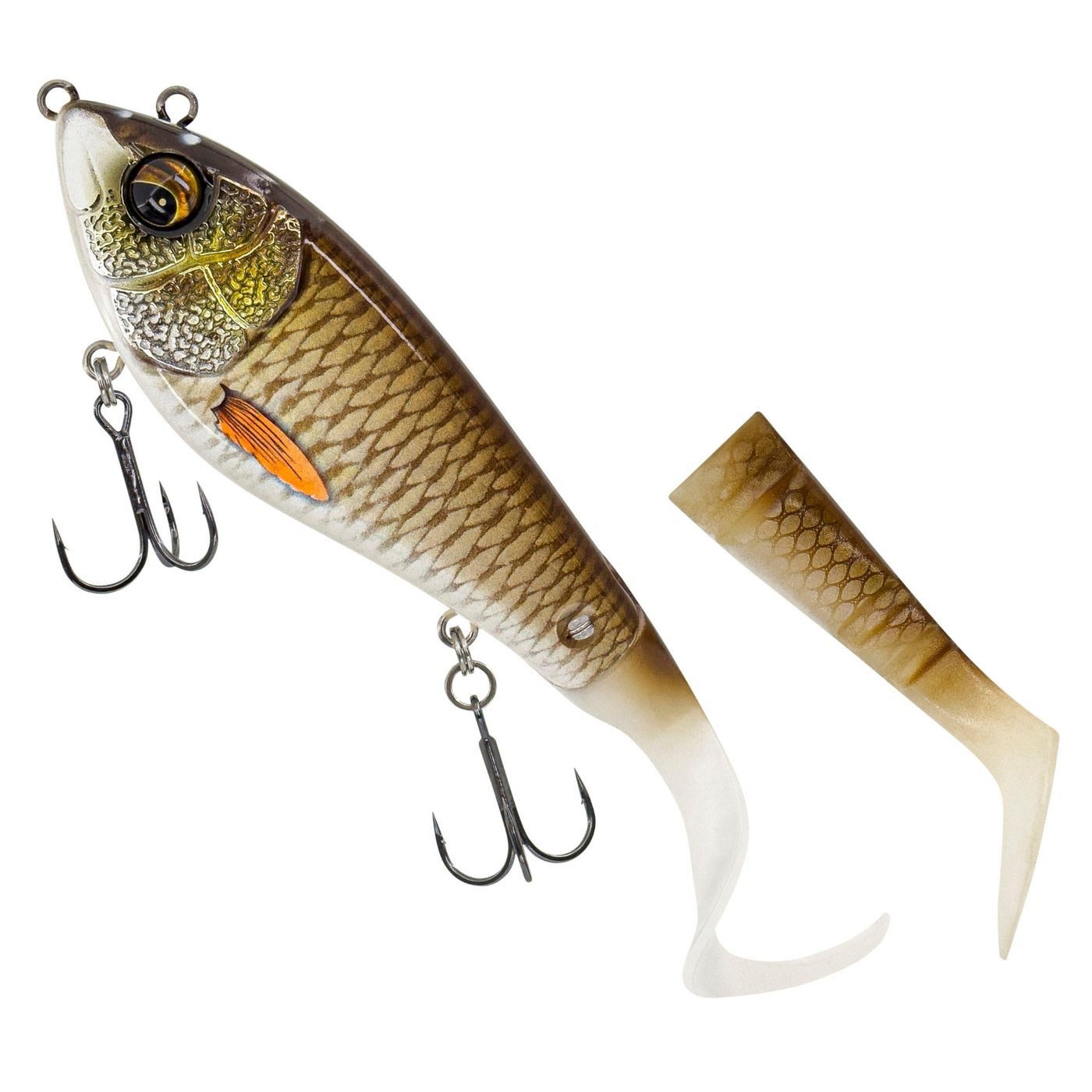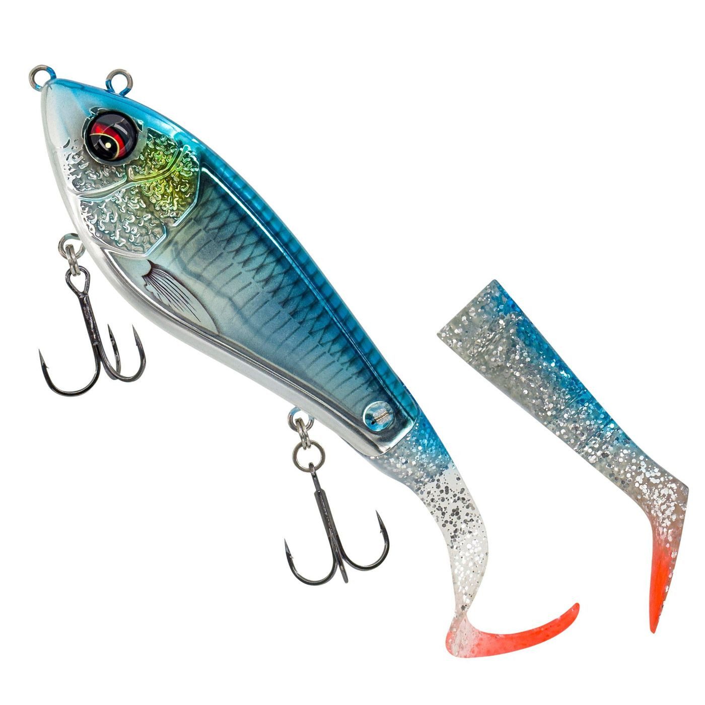 Savage Gear Deviator Tail SS - Ein großartiger Hybrid-Köder, der mit seinem Paddelschwanz eine hervorragende, rasante Aktion und mit dem Mini-Lockenschwanz eine verrückte Gleitaktion anbietet. Die zwei unterschiedlichen Befestigungspunkte ermöglichen es Ihnen, den Köder von superflach bis zu einer mittleren Tiefe zu fischen. Das einzigartige Cross-jaw-lock-tail-System hält die Gummischwänze perfekt an ihrem Platz und ermöglicht einen superschnellen und sicheren Wechsel. So können Sie den Köder mit einer Rute flach oder tief fischen, was ein komplett anderes Bewegungsmuster erzeugt. Всеs in allem ein super vielseitiger Hybrid-Köder mit intigriertem Wurfsystem, welches ihn zusätzlich noch zu einem tollen Serchbait macht, um zügig große Bereiche abzufischen! Genau wie unser Deviator Swim wird dieser sicher schnell ein neuer Klassiker werden!