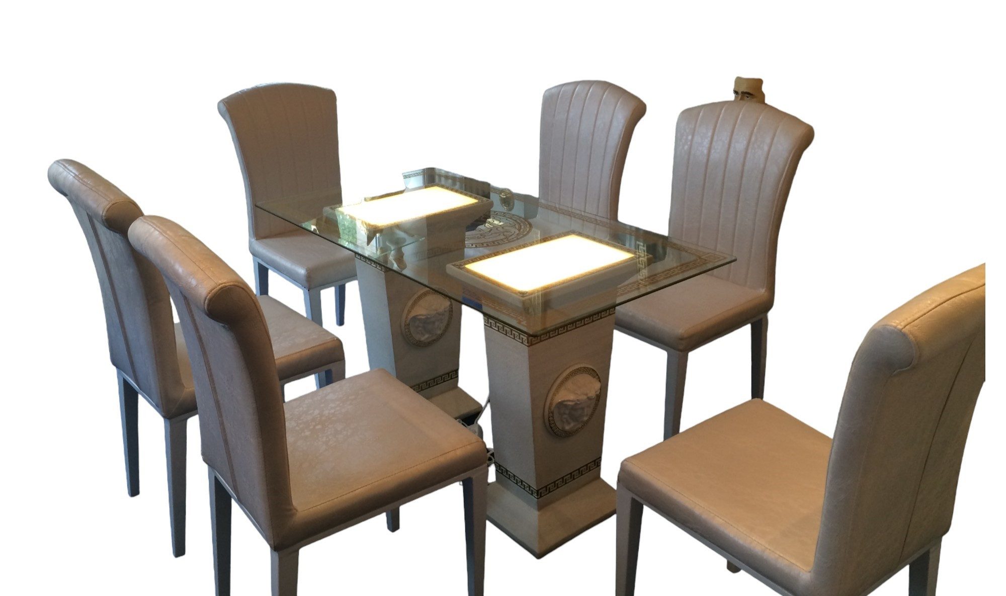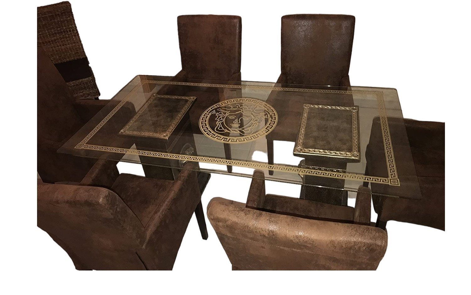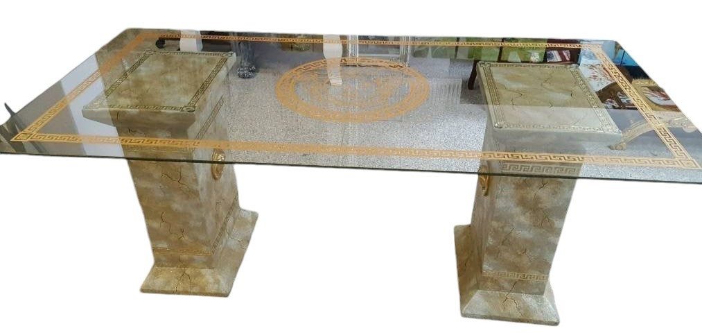 Esstisch, Wohnzimmertisch, Beistelltisch, Kanzleitisch, Praxistisch, Glastisch, Säulentisch, Hochwertige Ausführung! Der Esstisch verbreitet in jedem Raum ein helles, freundliches Ambiente. Die hochwertigen Materialien sowie die aufwendige Verarbeitung versprechen Langlebigkeit. Ein weiterer Vorteil ist die unkomplizierte Pflege des Produktes. Zubehör: Glasplatte + Säulen (2 Stück) Abmessungen (ca.): Glasplatte: Breite: 1800mm; Tiefe: 900mm; Stärke: 8mm; Säulen: Höhe: 750mm Material: Säulen aus Stuckgips, Tischplatte aus Glas Farbe: siehe Fotos. Herstellung: Die Säulen sind in liebevoller Handarbeit gefertigt und bemalt worden. Somit ist jedes Teil ein unverwechselbares Einzelstück. Montage: Säulen positionieren, Glasplatte drauf, fertig.