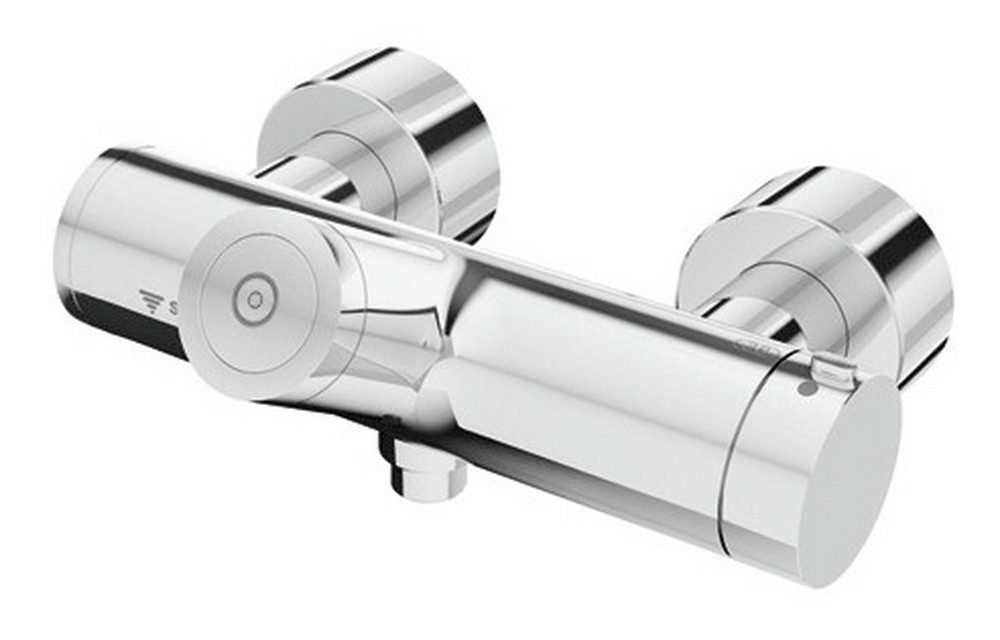 Schell Vitus Aufputz-Duscharmatur Batteriebetrieb Thermostat CVD-Touch-Elektronik Abgang unten mit Ventil zur thermischen Desinfektion Chrom