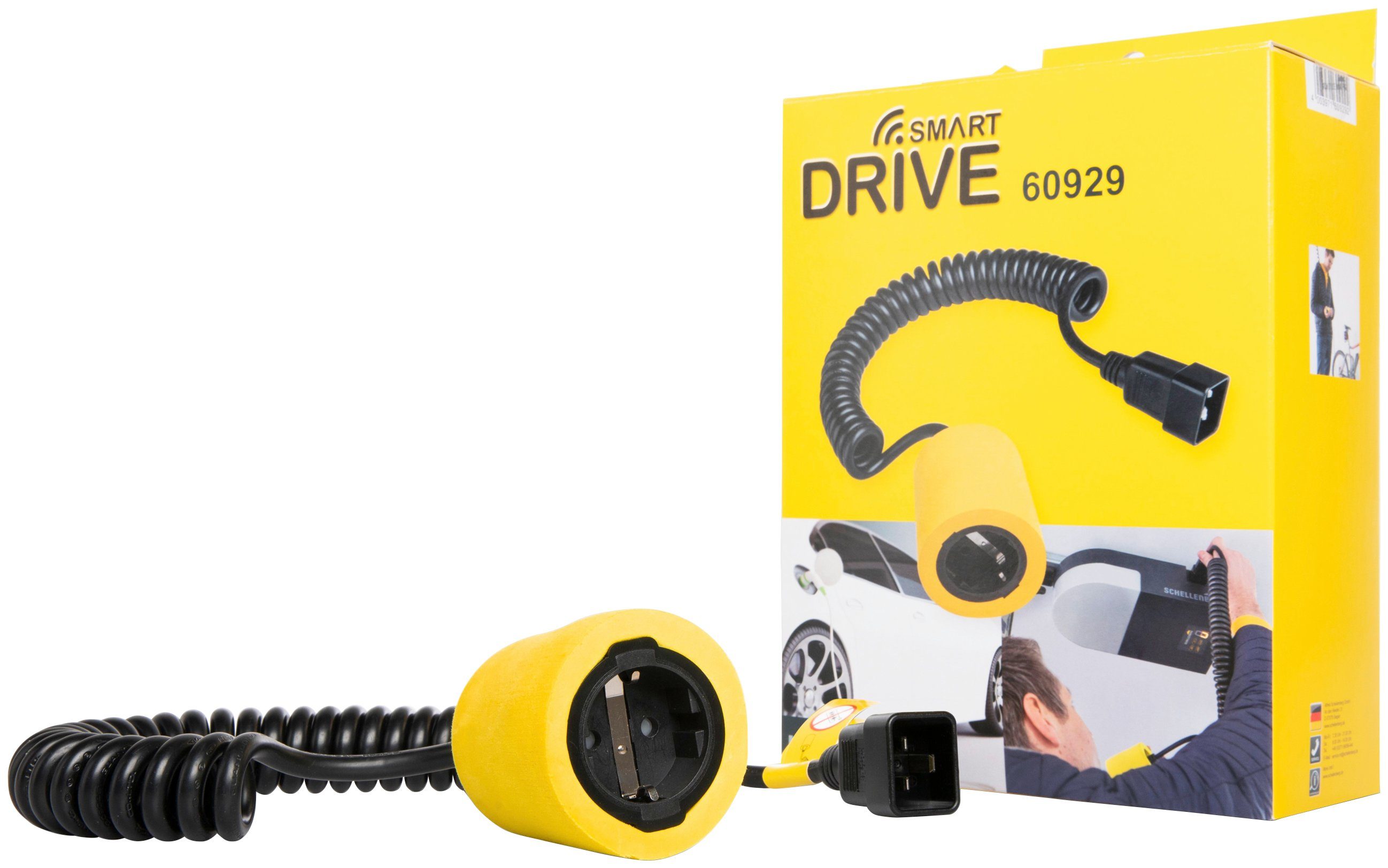 Das innovative und flexible Spiralkabel ermöglicht es, von einem Schellenberg Garagentorantrieb Smart DRIVE L oder XL für vielseitige Zwecke Strom zu entnehmen. So können Sie beispielsweise Ihr E-Auto/E-Bike in der Garage laden oder einen Staubsauger für die Autoreinigung anschließen. Das Spiralkabel wird mit einem Kaltgerätestecker am Garagentorantrieb befestigt und kann auf eine maximale Длина von 2,8 m ausgezogen werden. Eine Zugentlastung verhindert, dass dabei der Stecker unbeabsichtigt vom Antrieb herausgezogen wird. Die maximale Stromabnahme beträgt 2990 W. Im Standby wird kein Strom verbraucht. Der Stecker des Spiralkabels ist mit einem gelben Schaumstoff ummantelt, um versehentliche Stoßschäden am Auto zu vermeiden. Wird das Spiralkabel nicht gebraucht, kann es mit der beiliegenden Aufhängung am Garagentorantrieb befestigt werden und ist jederzeit griffbereit.