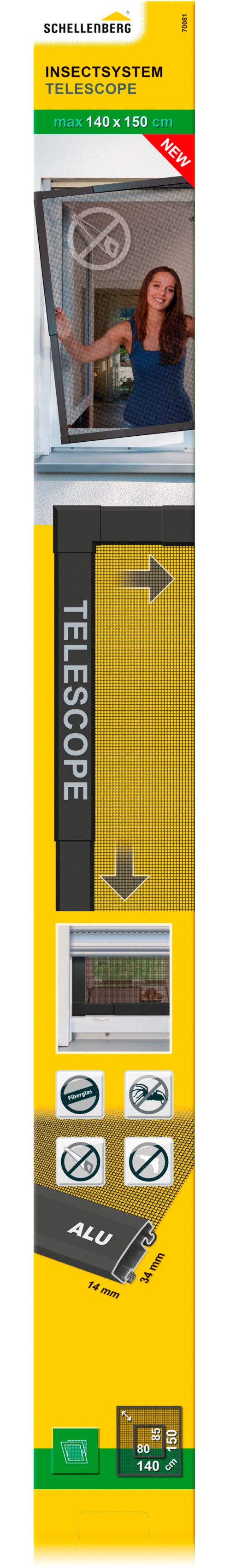 Mit dem Fliegengitterfenster Telescope passen Sie den Insektenschutz individuell an Ihr Fenstermaß an, ganz ohne sägen oder bohren. Das Komplettset besteht aus ausziehbaren Aluminiumrahmenprofilen, Fiberglasgewebe sowie Montagezubehör. Die ausziehbaren Rahmenprofile haben eine hochwertige, matt-sandierte Oberfläche. Einen erweiterten Schutz vor kleineren Kriech- und Krabbeltieren bietet die im Rahmen zusätzlich eingezogene Bürstendichtung. Das Insektenschutzgewebe aus Fiberglas ist reißfest und bietet eine optimale Durchsicht ins Freie. Die minimalen Maße des Fliegengitterfensters mit dem Maß 100 x 120 cm, betragen 60 x 70 cm. Bei dem Fliegengitter mit dem Maß 140 x 150 cm, beträgt das minimale Maß 80 x 85 cm. Der Insektenschutz wird nach dem Zusammenbau in den Fensterrahmen eingehängt und kann jederzeit wieder entfernt werden. Für den Einbau hinter einen Rollladen ist die Einbautiefe von 14, oder 16 mm zu beachten.