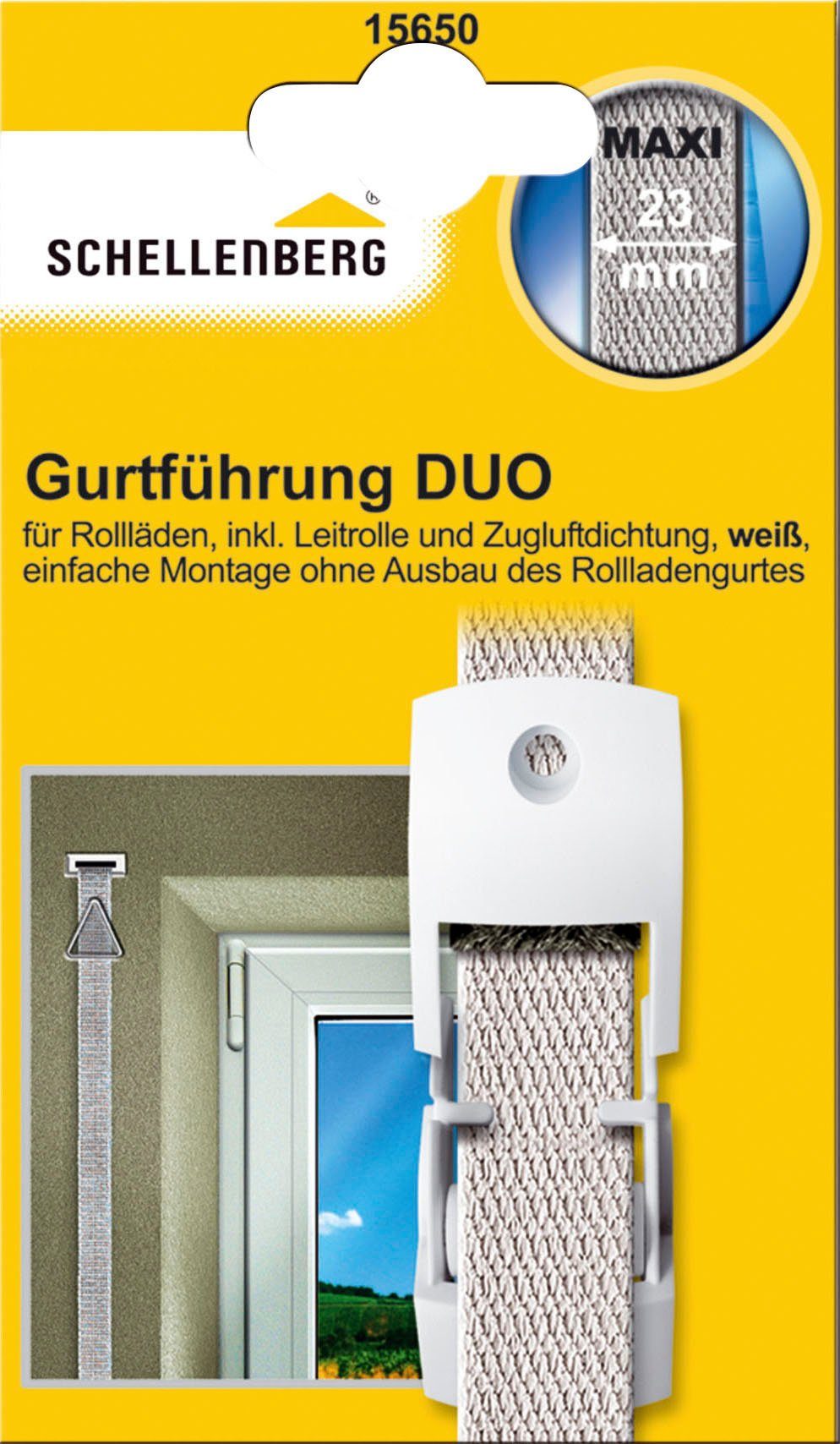 Die Gurtführung Duo führt den Rollladengurt über eine Leitrolle sauber aus dem Rollladenkasten und verringert den Verschleiß des Gurtbandes. Durch eine integrierte Bürstendichtung wird kalte Zugluft vermieden und so der Wohnkomfort gesteigert. Die Gurtführung Duo hat einen Lochabstand von 43 mm. Sie ist kompatibel mit dem Rollladensystem Mini und einer Gurtbreite von 14 mm und mit dem Rollladensystem Maxi und einer Gurtbreite von 23 mm.