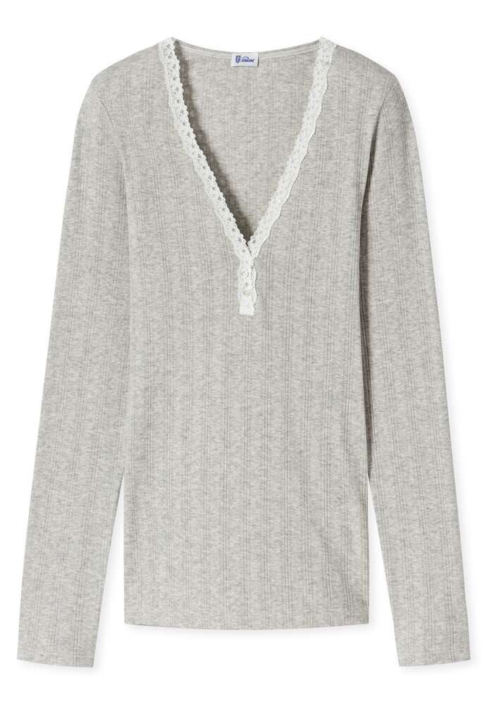 SCHIESSER REVIVAL – Klassiker für Damen und Herren. Mit über 150 Jahren Erfahrung steht SCHIESSER für Tradition, Qualität und zeitlose Klassiker. Die SCHIESSER REVIVAL Kollektion vereint diese Werte mit Leidenschaft für hochwertige Materialien und perfektionierte Schnitte. Hier findest du Kleidungsstücke, die die perfekte Grundlage für jedes Outfit bilden – von Oberteilen, die als Single Piece aber auch als Nachtwäsche getragen werden können, bis hin zu klassischer Unterwäsche, die neu interpretiert wurde und den traditionellen SCHIESSER-Werten treu bleibt. Die Revival Kollektion bietet eine exklusive Auswahl an Wäsche für Damen und Herren. Entdecke hier, was dich erwartet! Die SCHIESSER REVIVAL Kollektion ist für alle, die auf SCHIESSER Tradition und SCHIESSER-Originale setzen. Diese Wäscheklassiker sind zeitlos, vielseitig und absolut bequem. Jedes Modell der SCHIESSER REVIVAL Kollektion besticht durch seinen eigenen Charakter und Charme. REVIVAL Agathe: Agathe ist der Inbegriff eines femininen Klassikers. Mit geblümter Spitze an den Ärmelausschnitten und dem Dekolleté sowie feingeripptem Ajouré-Stoff schafft dieses Modell einen romantischen Look. Die Perlmuttknöpfe setzen ein elegantes Statement. Unsere Empfehlung fürs persönliche Wäsche-Меню: Schiesser Revival Agathe Long Shirt. Sie erhalten dieses Modell in Grau von Размер 34 bis 42. Probiere jetzt SCHIESSER REVIVAL und erlebe SCHIESSER-Wäsche in ihrer klassischsten Form!