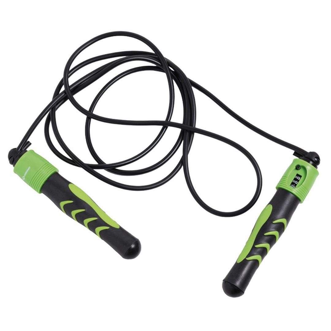 Springseil aus PVC mit rutschfesten ABS-Kunststoffgriffen. Mit automatischer Zählfunktion inklusive Löschtaste, max. Длина ca. 270 cm (längenverstellbar, inkl. Griffe 300 cm). Ausdauertraining mit dem Springseil ist hoch effektiv und bspw. beim Boxtraining zum Aufwärmen sehr beliebt, da kurze Einheiten schon sehr wirkungsvoll und intensiv sind.