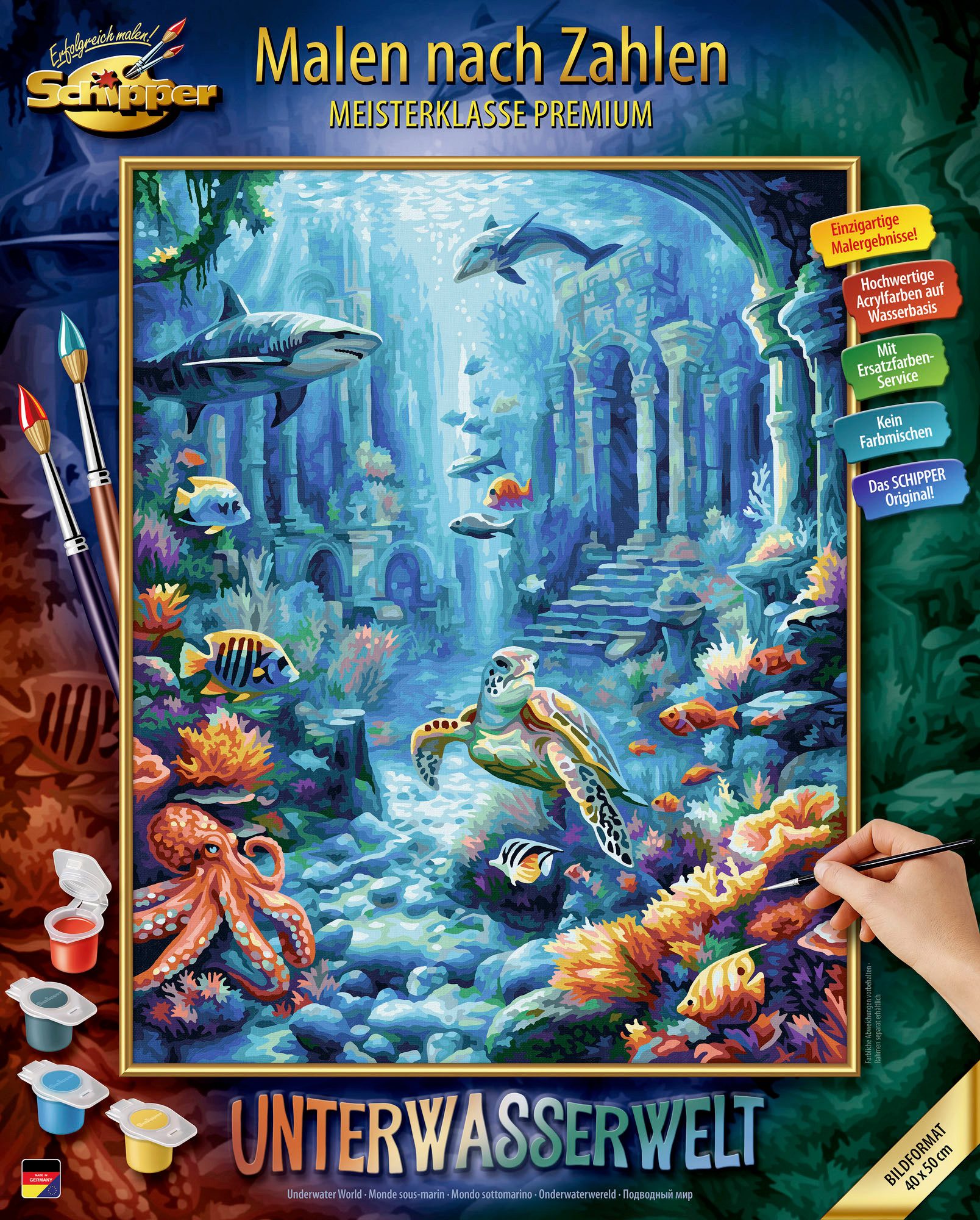 Lieferumfang | 36 Farbtöpfchenmit individuell fertig vorgemischten Acrylfaben auf Wasserbasis Kontrollblatt Künstlerpinsel Leinstrukturierte Maltafel 40x50 cm ausführliche Malanleitung |