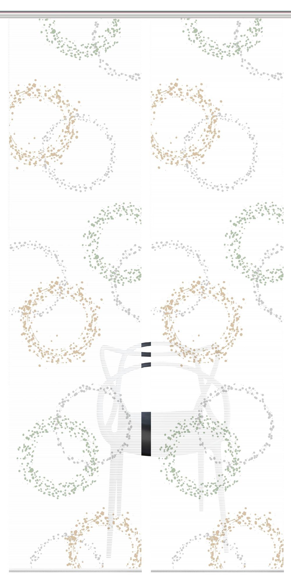 Jede Stoffbahn ist 260 cm hoch und 60 cm breit. Sie können die Höhe ganz leicht selbst auf Ihre Wunschhöhe kürzen. Die Seiten sind lasergeschnitten, was ein Ausfransen - auch nach dem Kürzen oder Waschen verhindert. Zum Lieferumfang gehören ein Paneelwagen (60 cm breite Gleitschiene, die in Ihre Gardinenschiene* geschoben wird), eine Alu-Klemmschiene unten sowie kleines Zubehör.