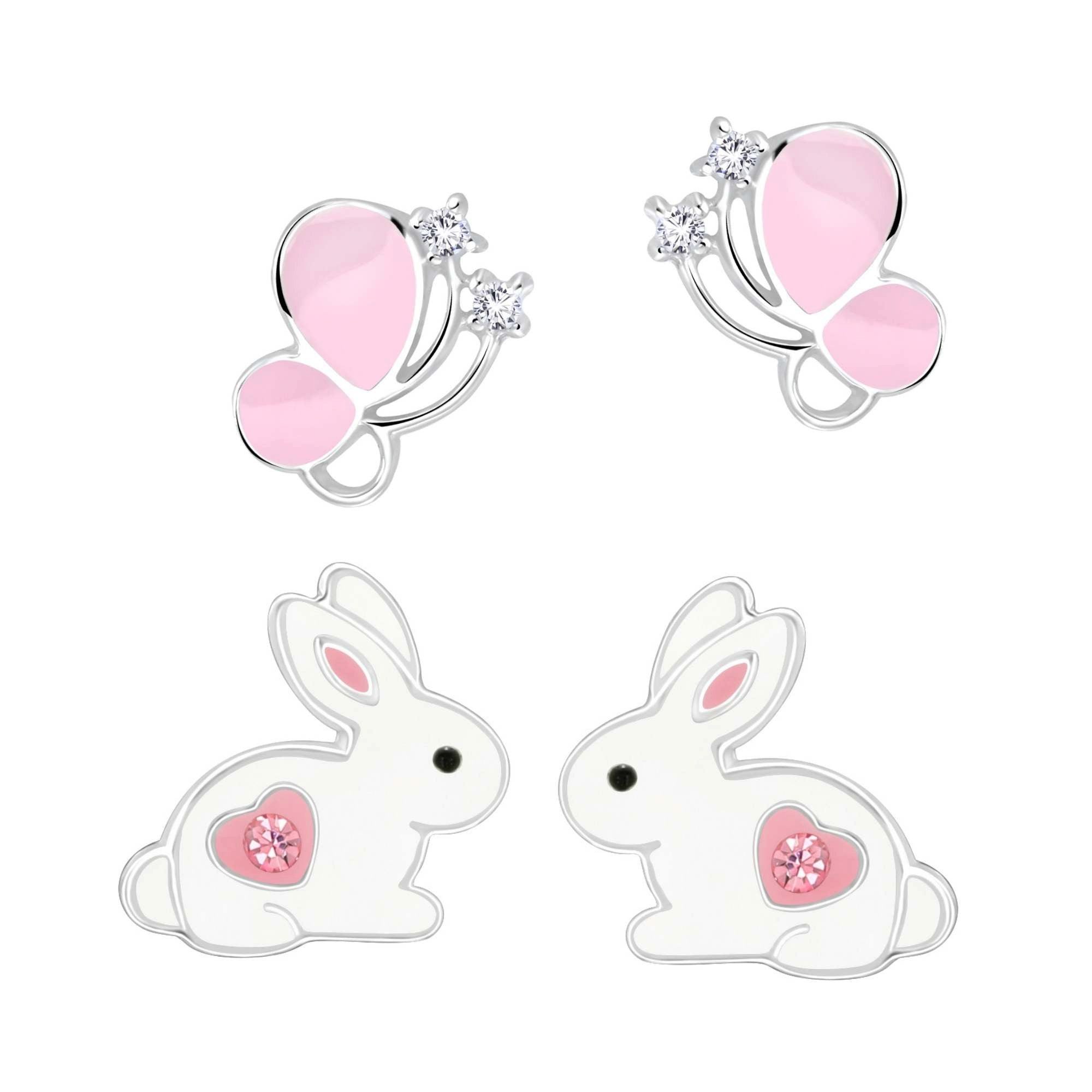 schmuck23 Ohrstecker-Set 2 x Kinder Ohrringe Hase Schmetterling 925 Silber Ostern (Geschenkset, Set aus 2 Paar Ohrringen), Mädchen Kinderschmuck 4 x Silikonverschluß extra