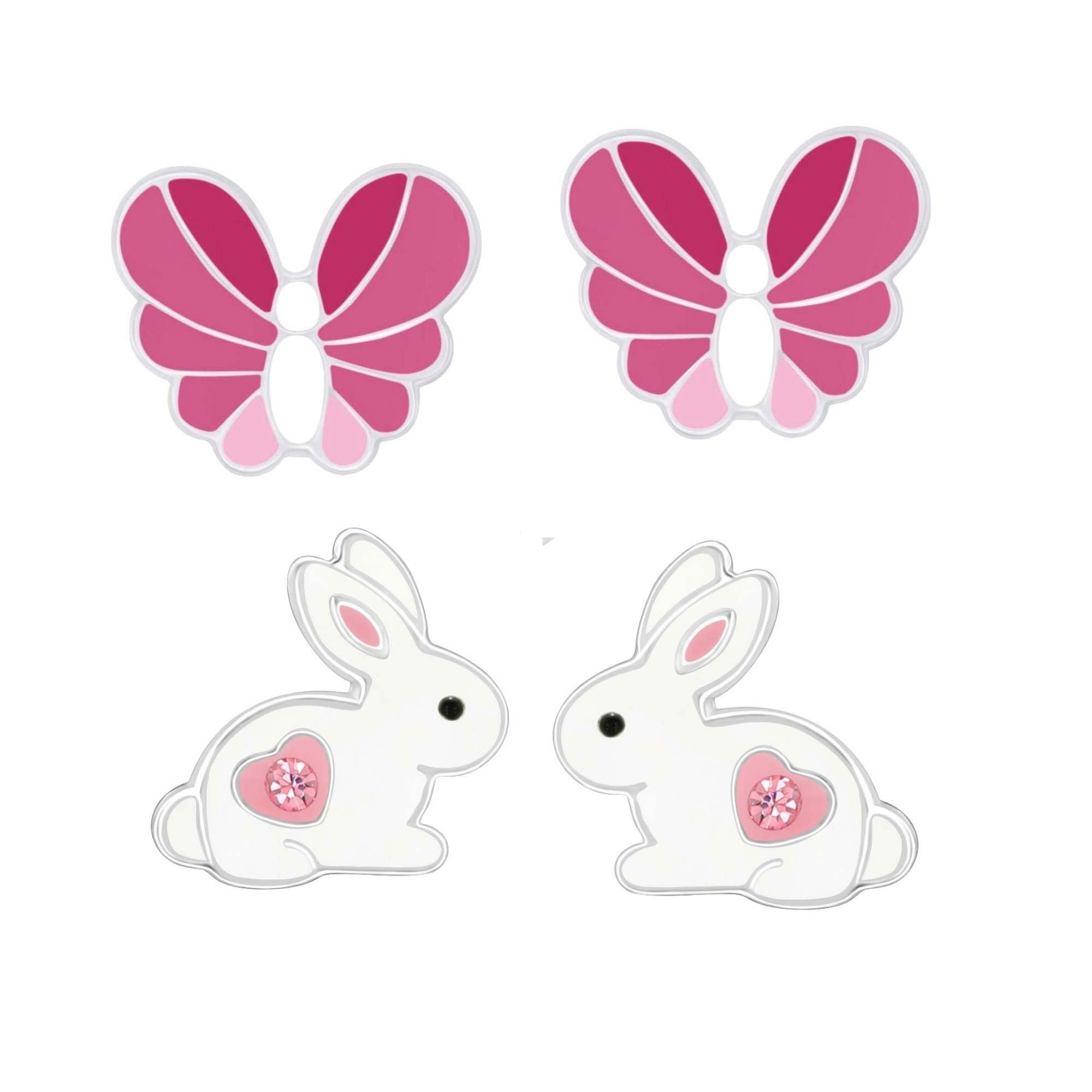 Ohrstecker-Set 2 x Kinder Ohrringe Hase Schmetterling 925 Silber Ostern
