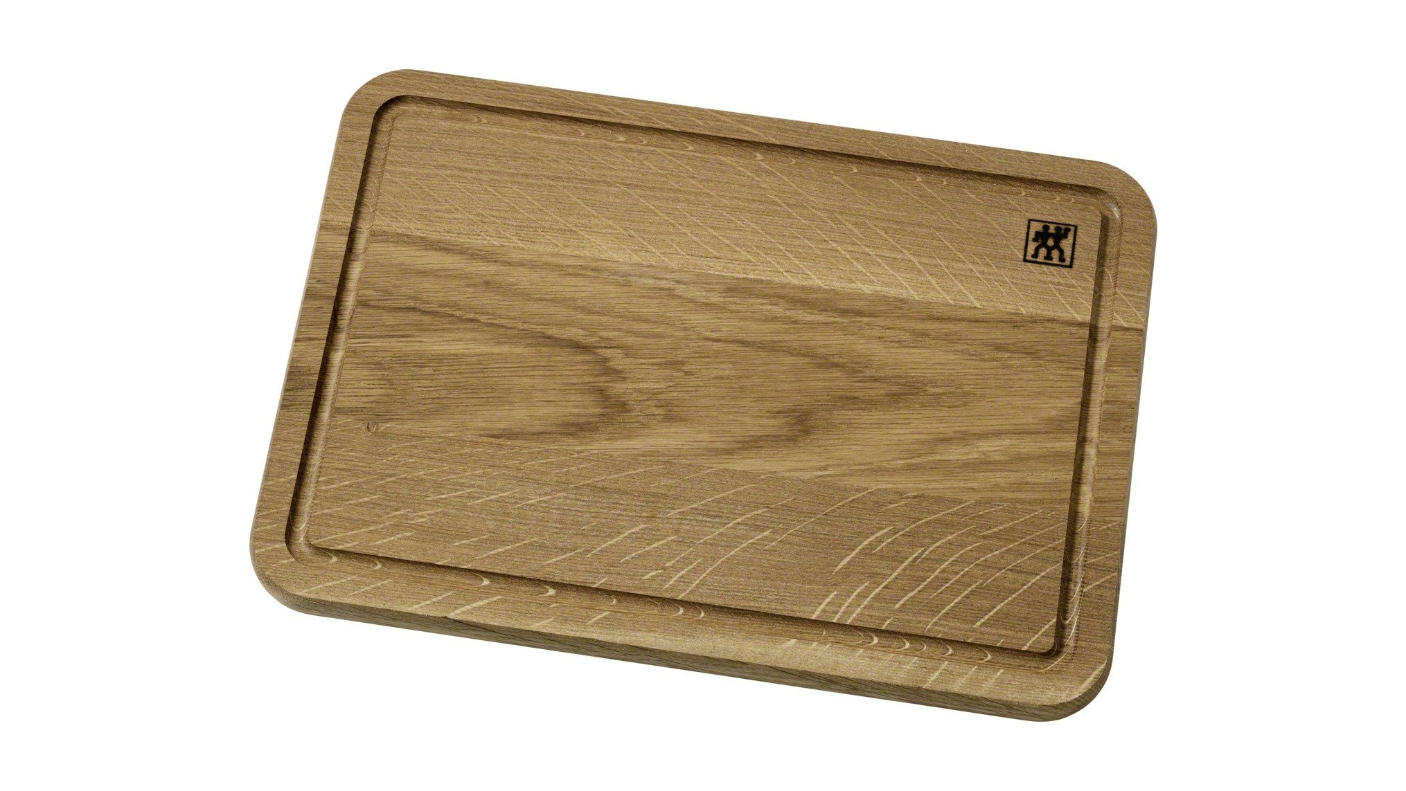 Zwilling Schneidbrett, Eiche Zubehör 35 x 25 x 2 cm Neben Kochgeschirr und Messern gehört zu einer ordentlichen Kochausstattung auch Messerzubehör. Zur Schonung der Messer und zur Erhaltung ihrer Klingenschärfe sollten geeignete Schneidunterlagen verwendet werden. Das große Eichenbrett hat die Maße 35 x 25 x 1,8 cm und ist Bestandteil des Angebots an ZWILLING-Messerzubehör. Als begeisterter Koch werden Sie die Vorteile des Eiche-Schneidbrettes schnell zu schätzen lernen. Durch einen regelmäßigen Gebrauch werden Messerklingen besonders strapaziert und hohen Belastungen ausgesetzt. Die Verwendung einer klingenschonenden Schneidunterlage hilft dabei, die Schärfe lange zu erhalten. Ideale Schneidunterlage aus Eichenholz Beidseitig nutzbar Mit Saftrille Hohe Härte und Festigkeit der Oberfläche Lange Lebensdauer Breite: 25 cm Höhe: 1,8 cm Длина: 35 cm