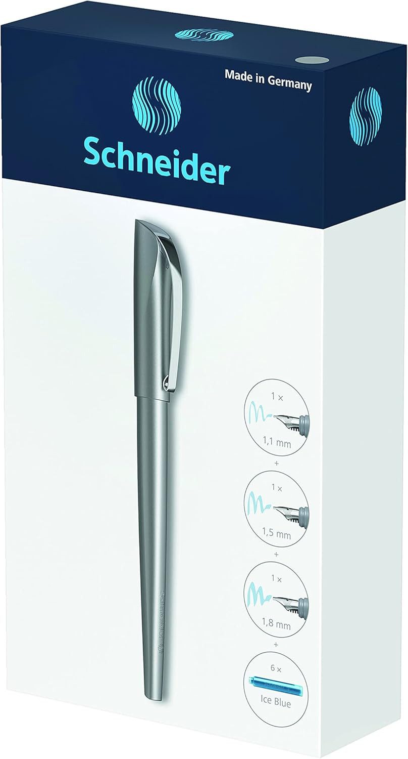 Schneider Callissima Kalligrafie Füller Geschenk-Set (3 verschiedene Federstärken 1,1 mm, 1,5 mm und 1,8 mm inkl. 6 Patronen) Schneider Callissima Set – Für elegante Schrift, die Eindruck hinterlässt Entdecken Sie das Schneider Callissima Set – die perfekte Wahl für alle, die Wert auf stilvolles Schreiben legen. Mit seinen hochwertigen Füllfederhaltern in drei verschiedenen Farben bringt dieses Set Eleganz und Präzision in jedes Schriftstück. Die weiche, fließende Tinte sorgt für ein müheloses Schreiberlebnis, während die ergonomisch geformten Griffe auch bei längeren Schreibarbeiten höchsten Komfort bieten. Ideal für handgeschriebene Briefe, Tagebucheinträge oder kreative Projekte – das Callissima Set ist mehr als nur ein Schreibgerät, es ist ein Ausdruck Ihrer Persönlichkeit. Verpackt in einer edlen Geschenkbox, ist es das perfekte Geschenk für alle, die das Besondere schätzen. Verleihen Sie Ihrer Schrift einen Hauch von Raffinesse – mit dem Schneider Callissima Set. Mit dem Callissima Schönschreibfüller holen sie das Beste aus ihrer Handschrift heraus. Für kreative Köpfe, die ihre Schrift individueller gestalten oder mit kalligraphischem Handlettering beeindrucken wollen. Ideal für handgeschriebene Briefe, Tagebucheinträge oder kreative Projekte – das Callissima Set ist mehr als nur ein Schreibgerät, es ist ein Ausdruck Ihrer Persönlichkeit. Verpackt in einer edlen Geschenkbox, ist es das perfekte Geschenk für alle, die das Besondere schätzen. Verleihen Sie Ihrer Schrift einen Hauch von Raffinesse – mit dem Schneider Callissima Set. Kalligrafie Füller Schönschreibfüller für Kalligrafie. Dank des langen Schafts und dem ergonomisch geformten Griffstück, liegt der Füller komfortabel in der Hand Set Mint mit 6x Bermuda Blue Tintenpatronen Set Anthrazit mit 6x Ice Blue Tintenpatronen Set Apricot mit 6x Apricot Tintenpatronen