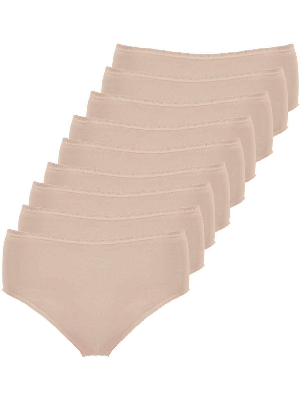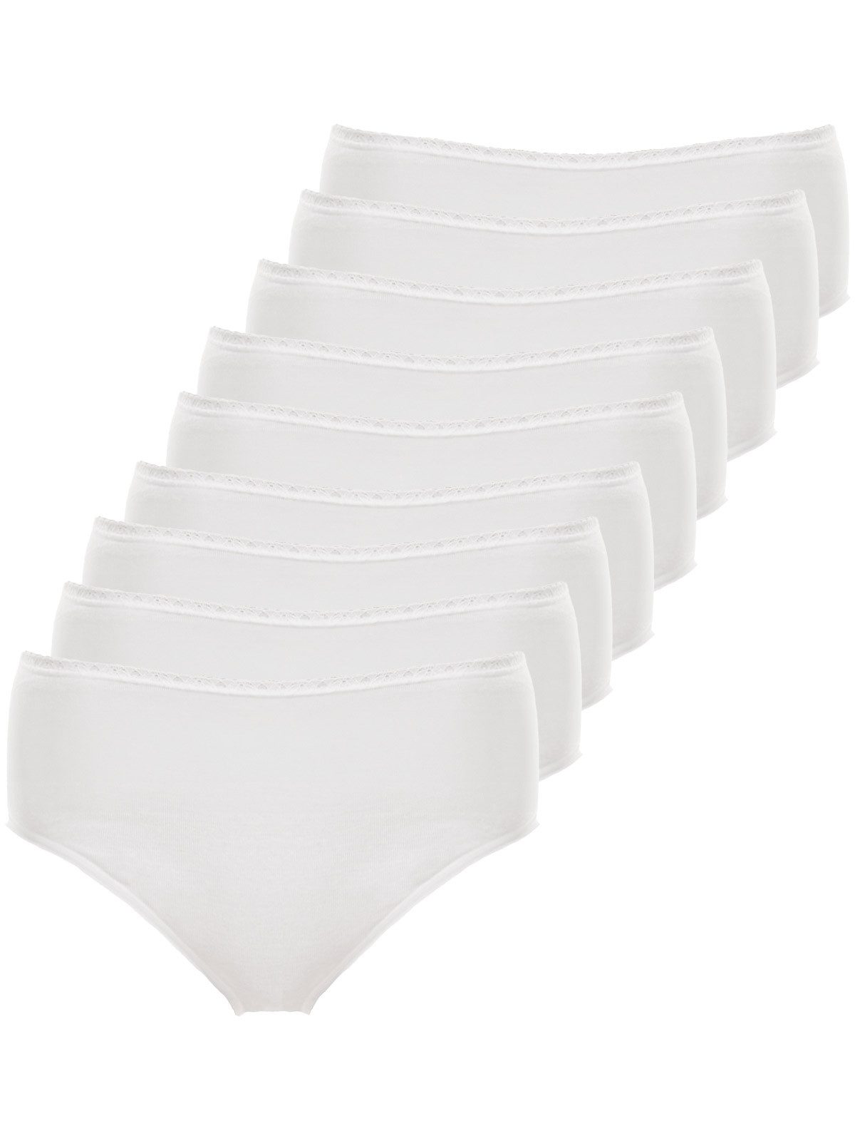9er Pack Damen Maxislip von der Marke Schöller aus der Serie Baumwolle. Besondere Merkmale des Artikels sind Maxi-Slip Schnittform, mit Spitze am Bund, super bequem, in Feinripp Qualität und zu 100% aus komfortabler Baumwolle. Vertrauen Sie auf Schöller Unterwäsche und erleben Sie den Unterschied: hochwertige Materialien, toller Tragekomfort und eine vielfältige Auswahl an Designs machen Schöller zur idealen Wahl für alle, die Wert auf Qualität legen. Füllen Sie Ihre Unterwäsche-Schublade mit zeitlose Basics und modernen Trends Schöller – bequem und verlässlich!