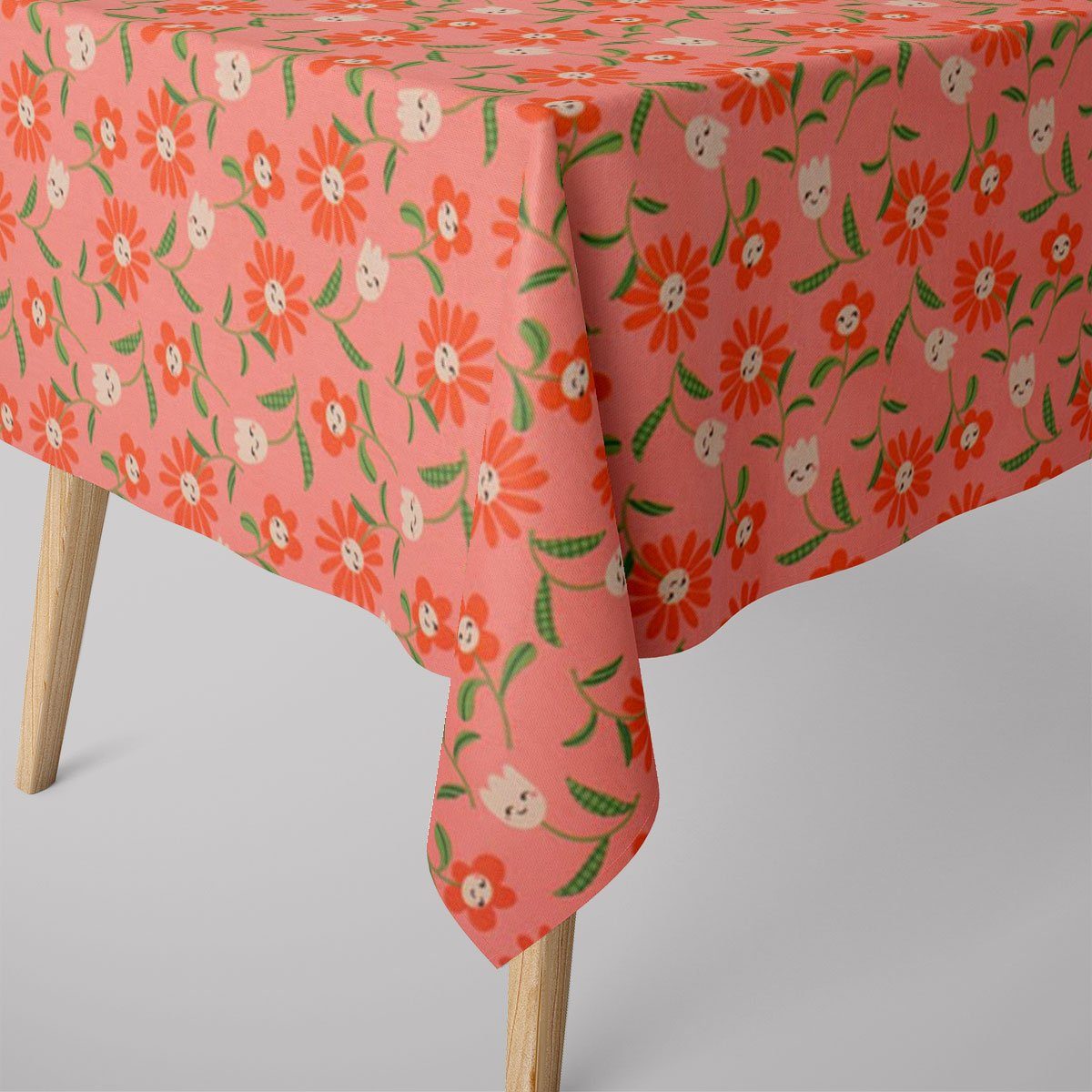 FRÖHLICHE BLUMEN: Die abwaschbare Tischdecke zaubert dir mit ihren fröhlichen Blumen auf rosa Untergrund ein Lächeln ins Gesicht. Standardmäßig versehen wir alle unsere Tischdecken mit einem ca. 2 cm breiten Saum.