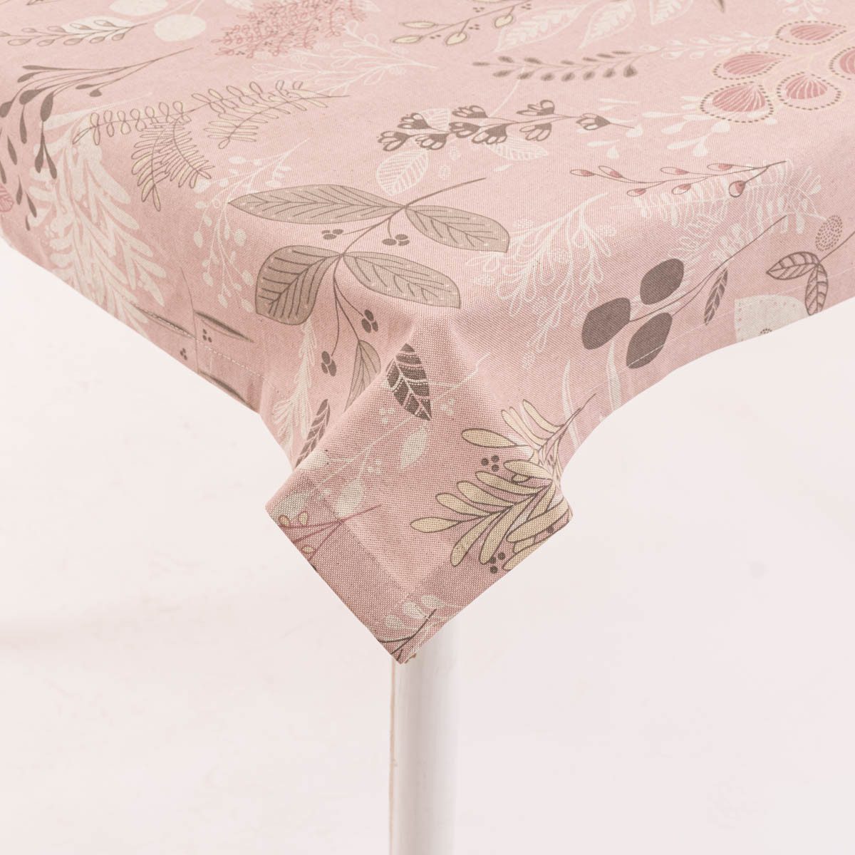 SOFT CALMING LEAVES PRINT: Der Print mit Gräsern, Zweigen und Blumen kommt auf dem rosafarbigen Untergrund im Leinenlook toll zur Geltung und passt hervorragend zu vielen natürlichen und modernen Einrichtungsstilen wie Landhaus oder Skandinavisch.