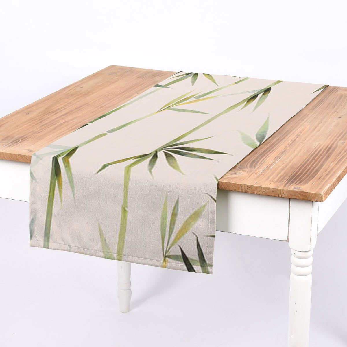 VIELSEITIG EINSETZBAR: Ob auf dem Tisch im Ess- oder Wohnzimmer, auf der Schlafzimmerkommode oder auf dem Sideboard im Flur – der Tischläufer mit wunderschönem Bambuspflanzen-Print ergänzt Dein Interieur perfekt und bringt Gemütlichkeit in Dein Zuhause