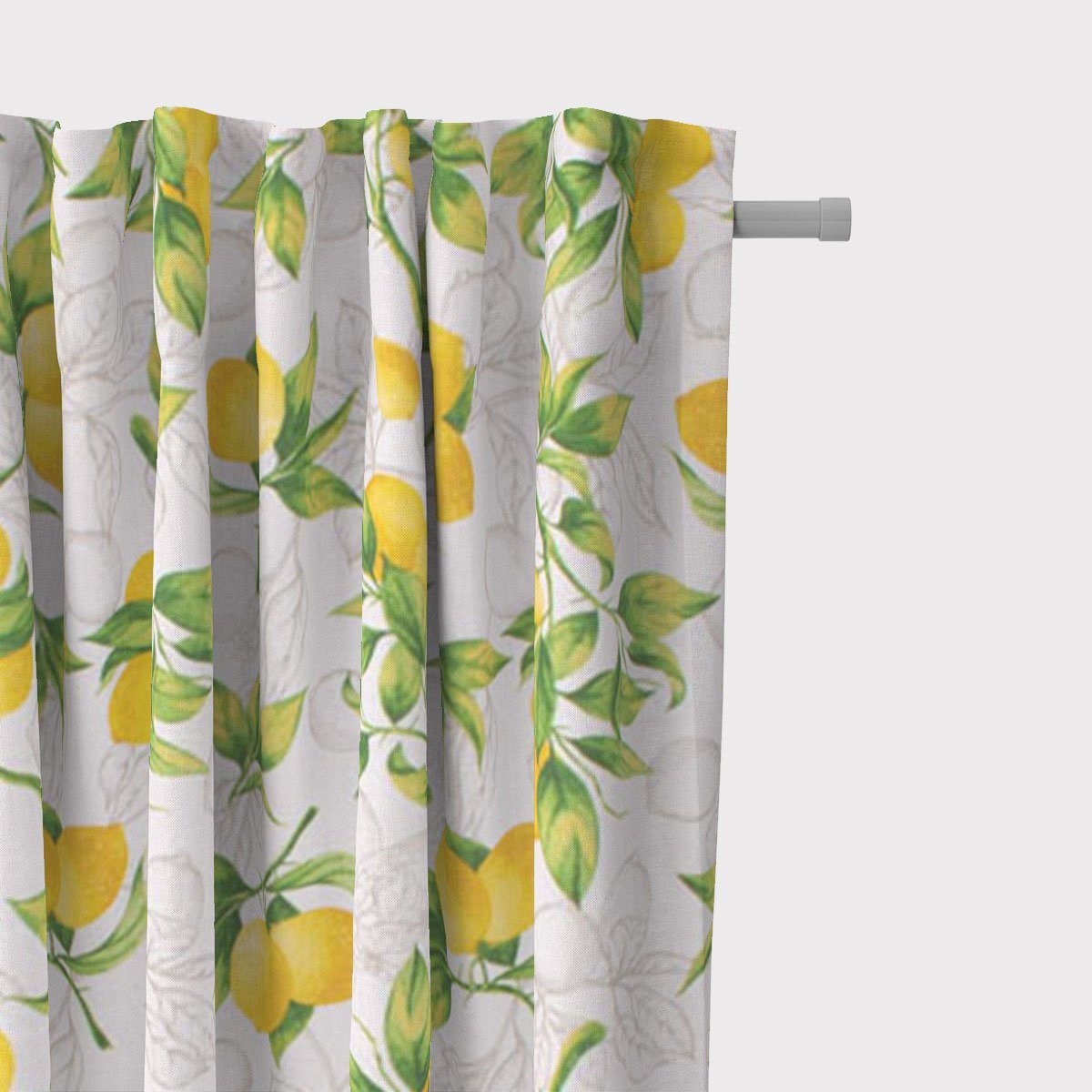 NATÜRLICH UND MODERN: Die leuchtenden Zitronen an den saftig, grünen Zweigen zaubern ein mediterranes Feeling auf den Vorhang und sorgen für ein tolles Flair.