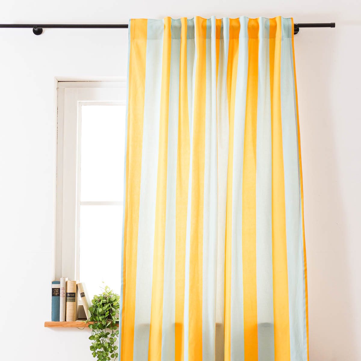 STREIFEN-PRINT: Der Vorhang mit Streifen-Digitaldruck in Hellblau und Gelb aus unserer Schöner Leben.-Kollektion bringt Summer Vibes in dein Zuhause. Das abstrakte Dessin mit Blockstreifen in tollen Farben kommt im Digitaldruck besonders leuchtend und klar zur Geltung und setzt stylische Akzente.