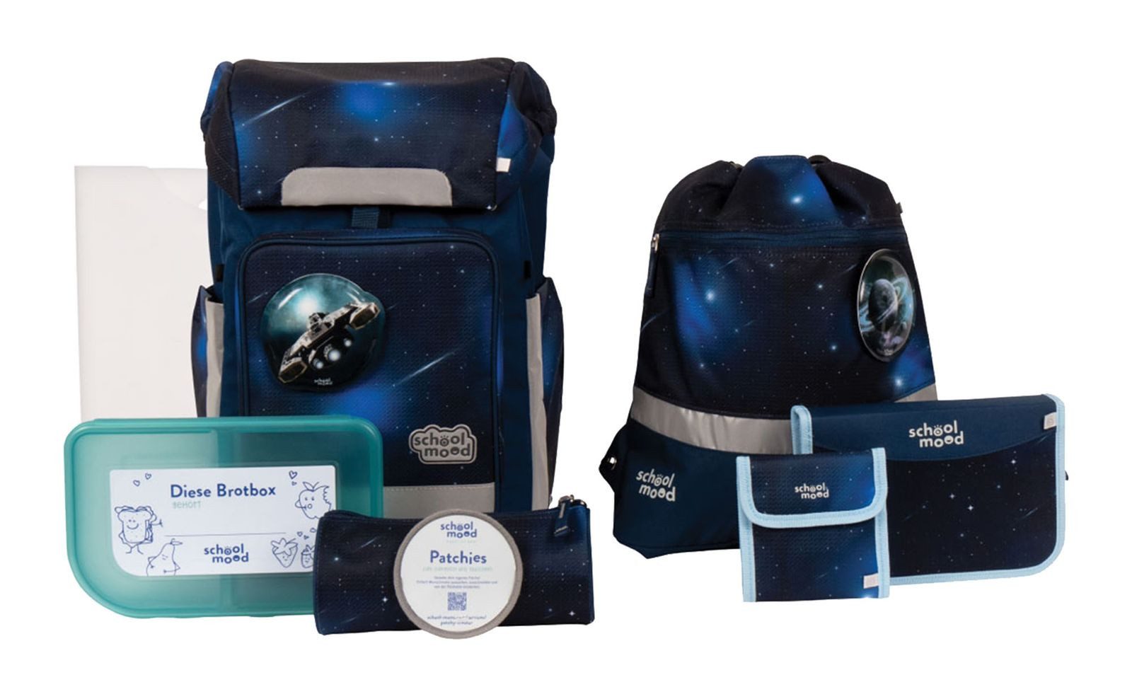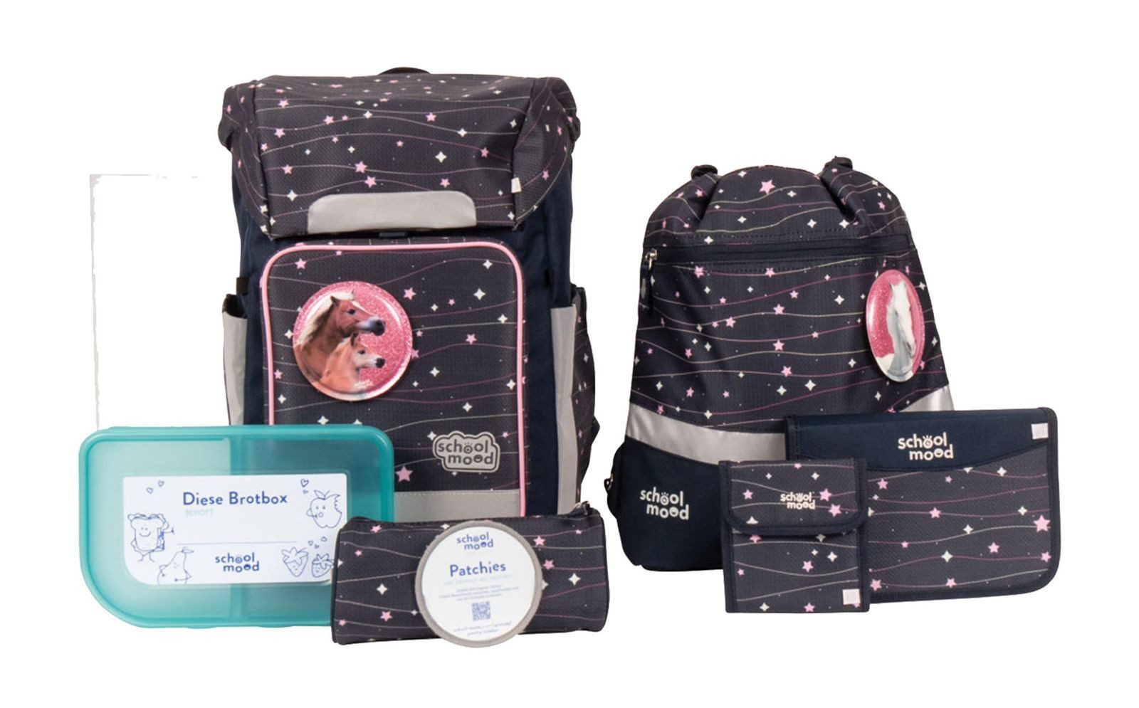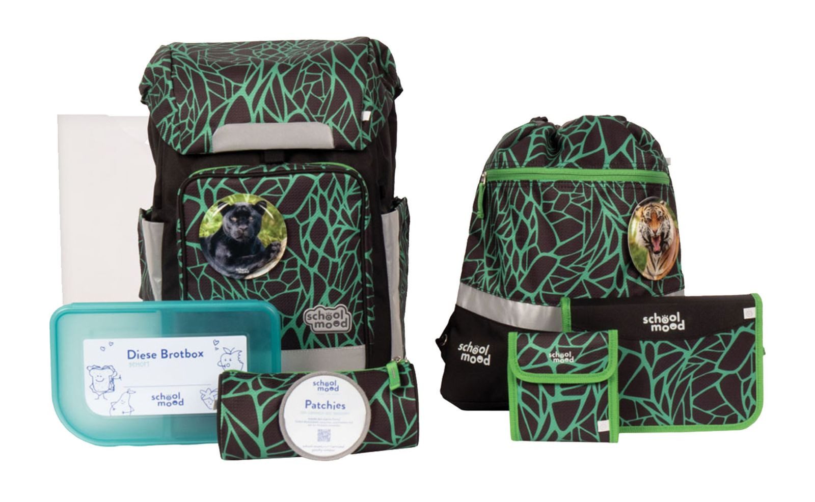 Das ideale Startpaket für die Grundschule erhalten Sie mit diesem School-Mood-Set. Dieses Rebel Schulranzen-Set 8-teilig bietet eine Fülle an nützliche Highlights. Denn Schulranzen, Mäppchen, Schlampermäppchen, Sportbeutel, Brustbeutel, Heftbox und Brotdose sind Bestandteile in diesem Set. Die beiliegenden Patchies geben dem Schulranzen eine themenbezogene Note. Rückenschonung und Sichtbarkeit wurden auch berücksichtigt. Die reflektierenden Elemente lassen Ihren Liebling auffallen und das ergonomische Tragesystem unterstützt seinen Rücken. Auch begeistert bei diesem Rebel Schulranzen-Set 8-teilig die Ausstattung, wie das Thermofach, in das die Brotdose von School-Mood perfekt hinein passt und viele praktische Fächer für zum Beispiel Namensschild und Stundenplan. Seine Patchies lassen sich kinderleicht am Rucksack anbringen. Der Sportbeutel lässt sich mit den Druckknöpfen des Brustgurtes an den Druckknöpfen des Schulranzens, die sich in der Höhe der Beckenflossen befinden, befestigen. Hier wurde wirklich an alles gedacht.