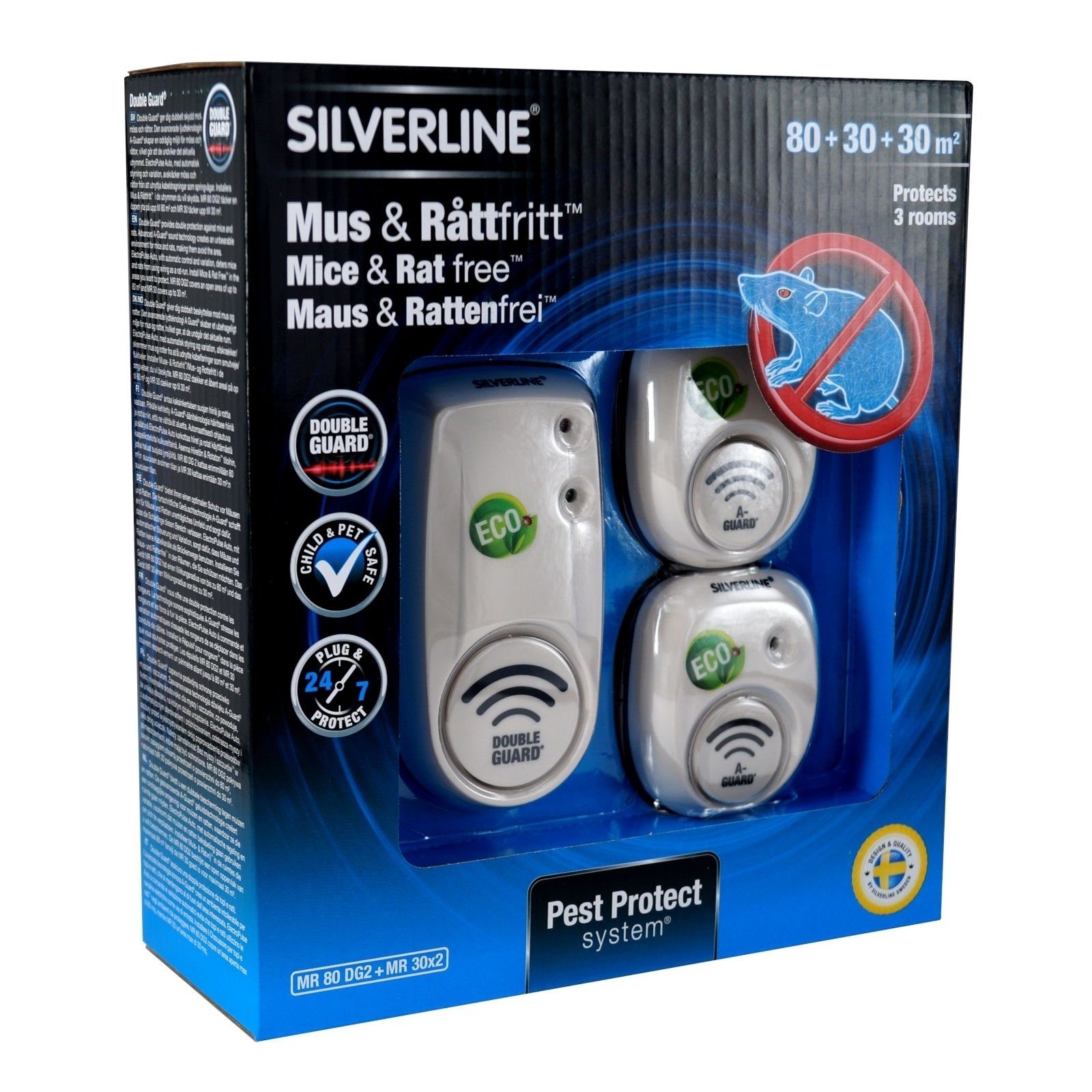 Mit Silverline Maus- & Rattenfrei 80+30+30 m² erhalten Sie eine sichere Systemlösung gegen Schädlinge. Silverline Pest Protect system schützt Ihr Heim 24 Stunden am Tag, das ganze Jahr, hygienisch und ohne Verwendung von Gift.