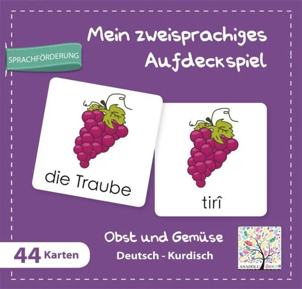 Spiel Mein zweisprachiges Aufdeckspiel, Obst und Gemüse, Deutsch-Kurdisch...