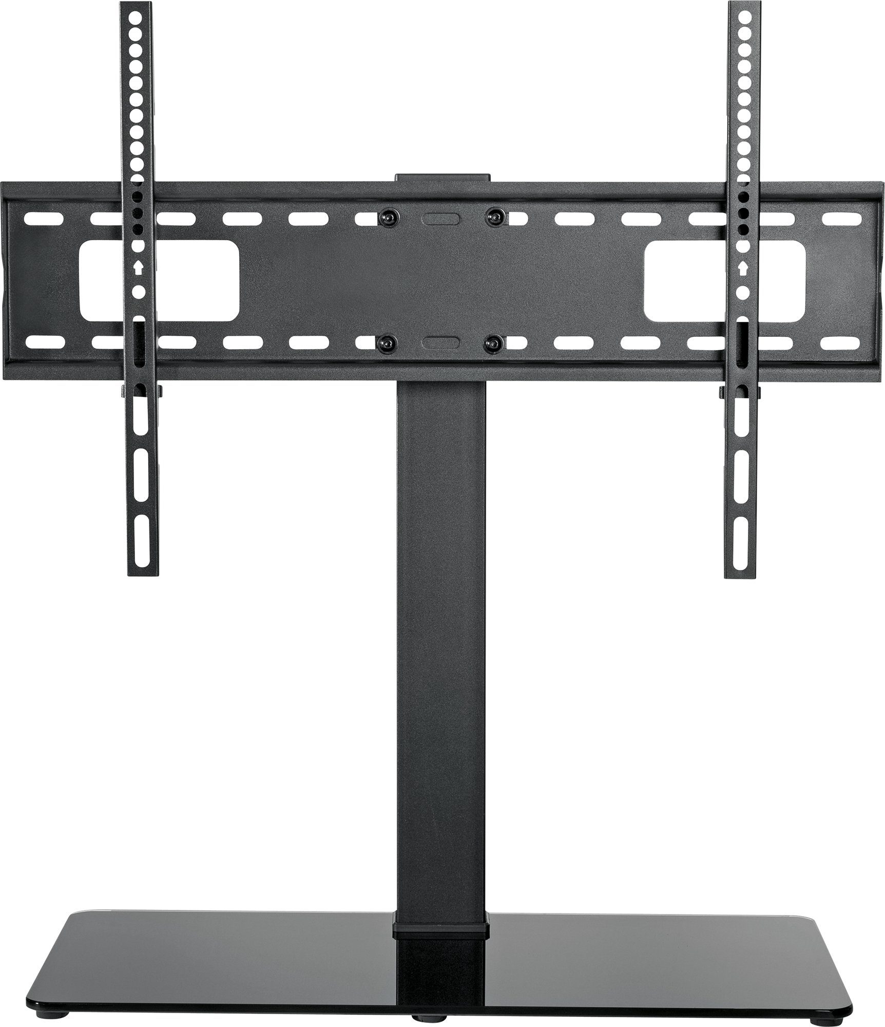 Unser SCHWAIGER® Standfuß mit Glasbodenplatte ist für die Befestigung von einem Flachbildschirm geeignet. Die Halterung ist dabei nach links und rechts schwenkbar und verfügt über eine praktische Kabelführung. Darüber hinaus bietet der Standfuß Ihrem TV Gerät dank seiner äußerst robusten Basis aus gehärtetem Sicherheitsglas stets einen stabilen und sicheren Halt.