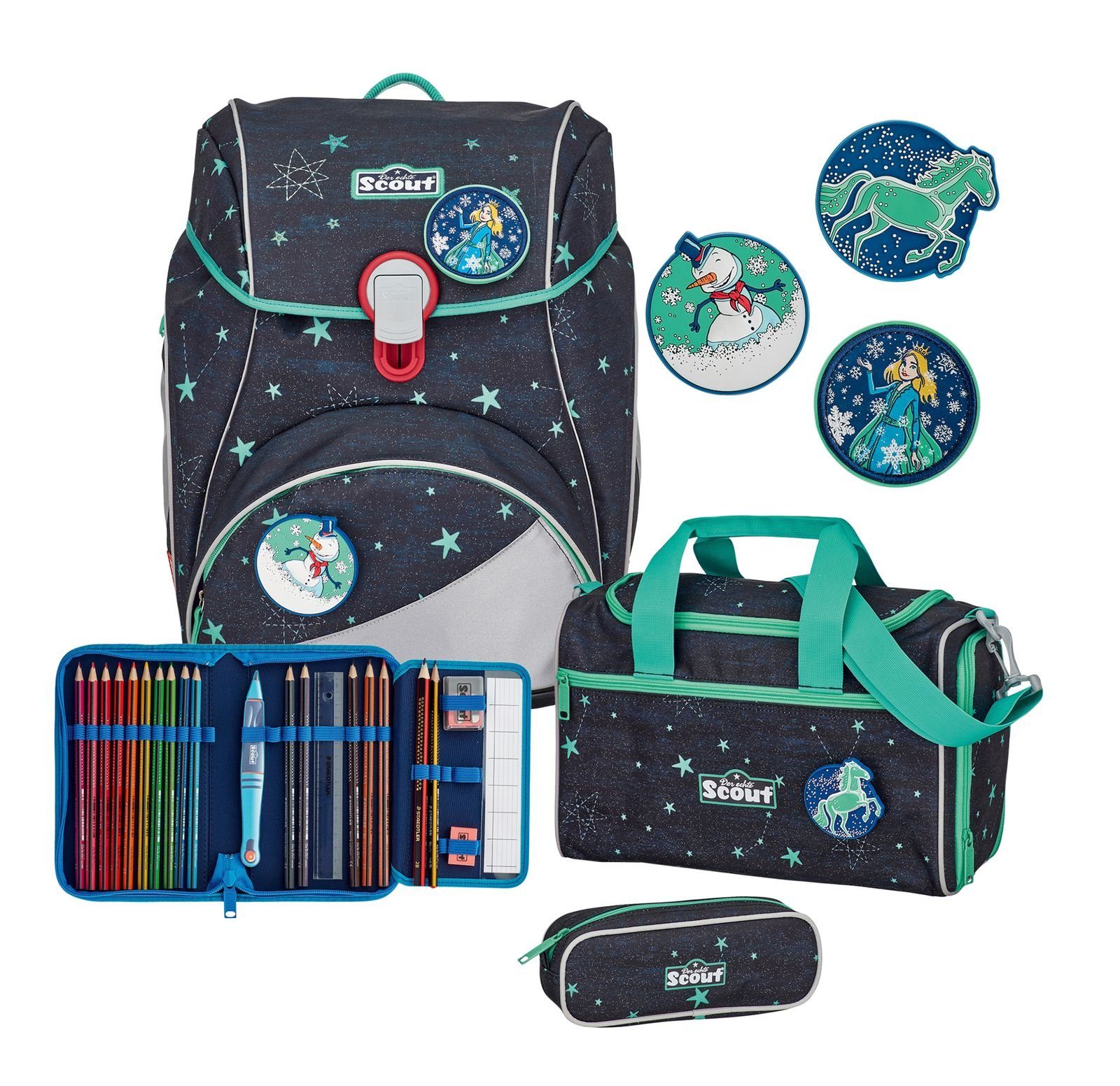 Mit diesem Schulranzen von Scout wird der Weg im Dunkeln um einiges ungefärhlicher! Und das dank der großen Reflektoren. Mit passendem Schlampermäppchen und Sporttasche, kann der Schultag starten. Im geräumigen Hauptfach bringen Sie alle Unterlagen, Vesperdose und Trinkflasche geordnet unter. Das Motiv auf der Oberseite lässt den Scout LED Alpha Set 4-teilig zu etwas ganz besonderem werden. Die gepolsterte Rückseite ist kinderrückengerecht geformt und in der Размер verstellbar, so können Ihre Kinder mitwachsen und lange Spaß an ihm haben.