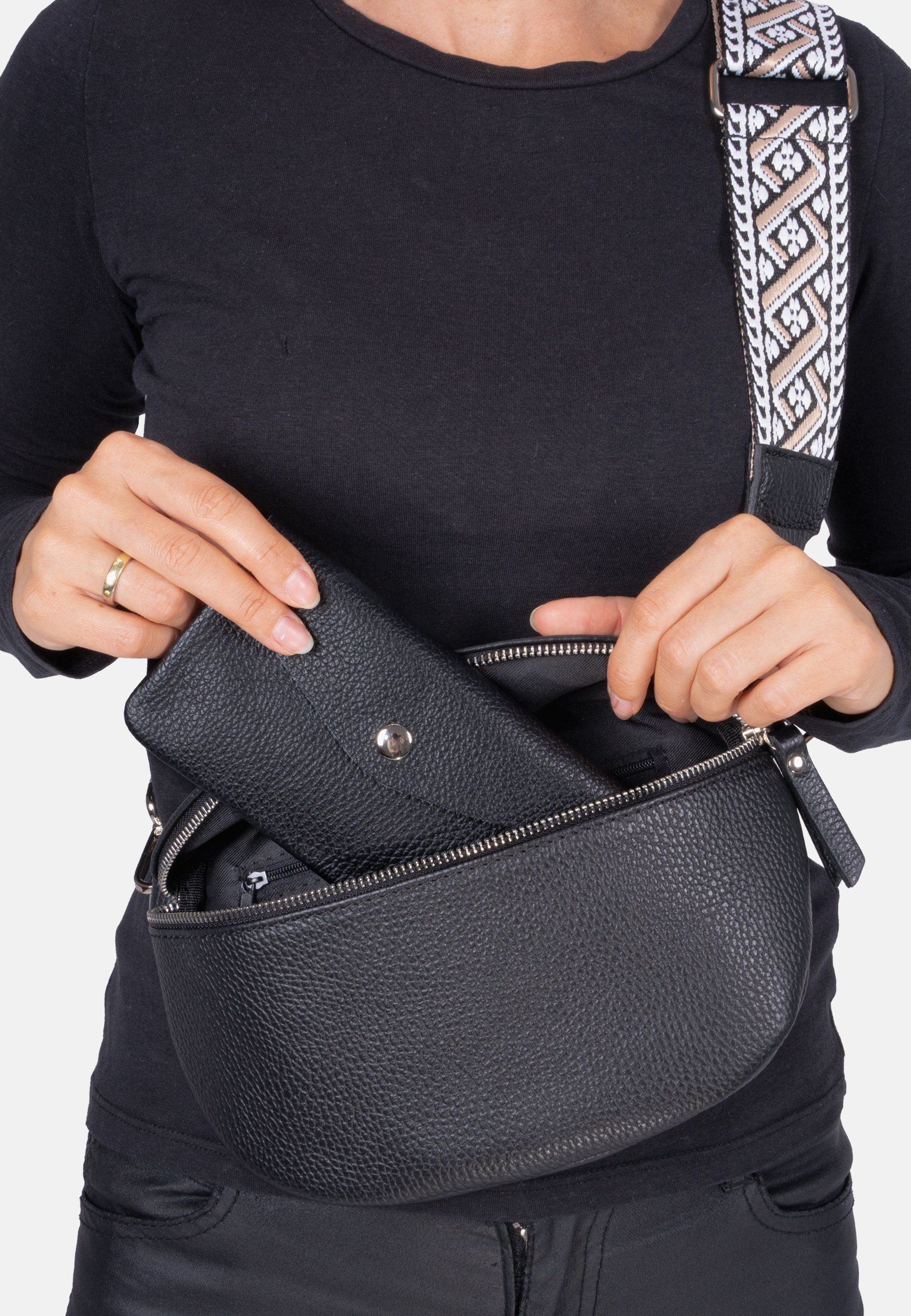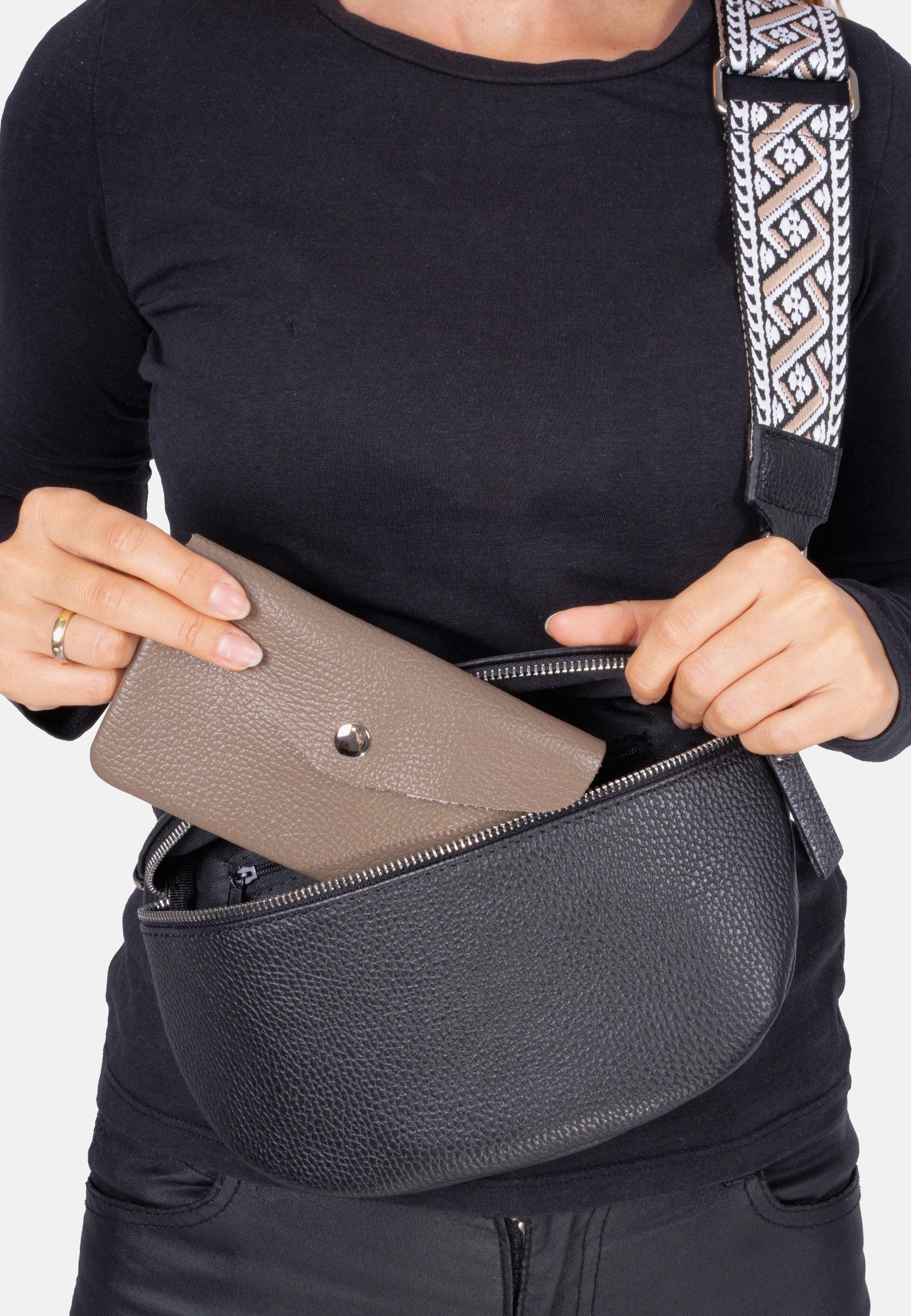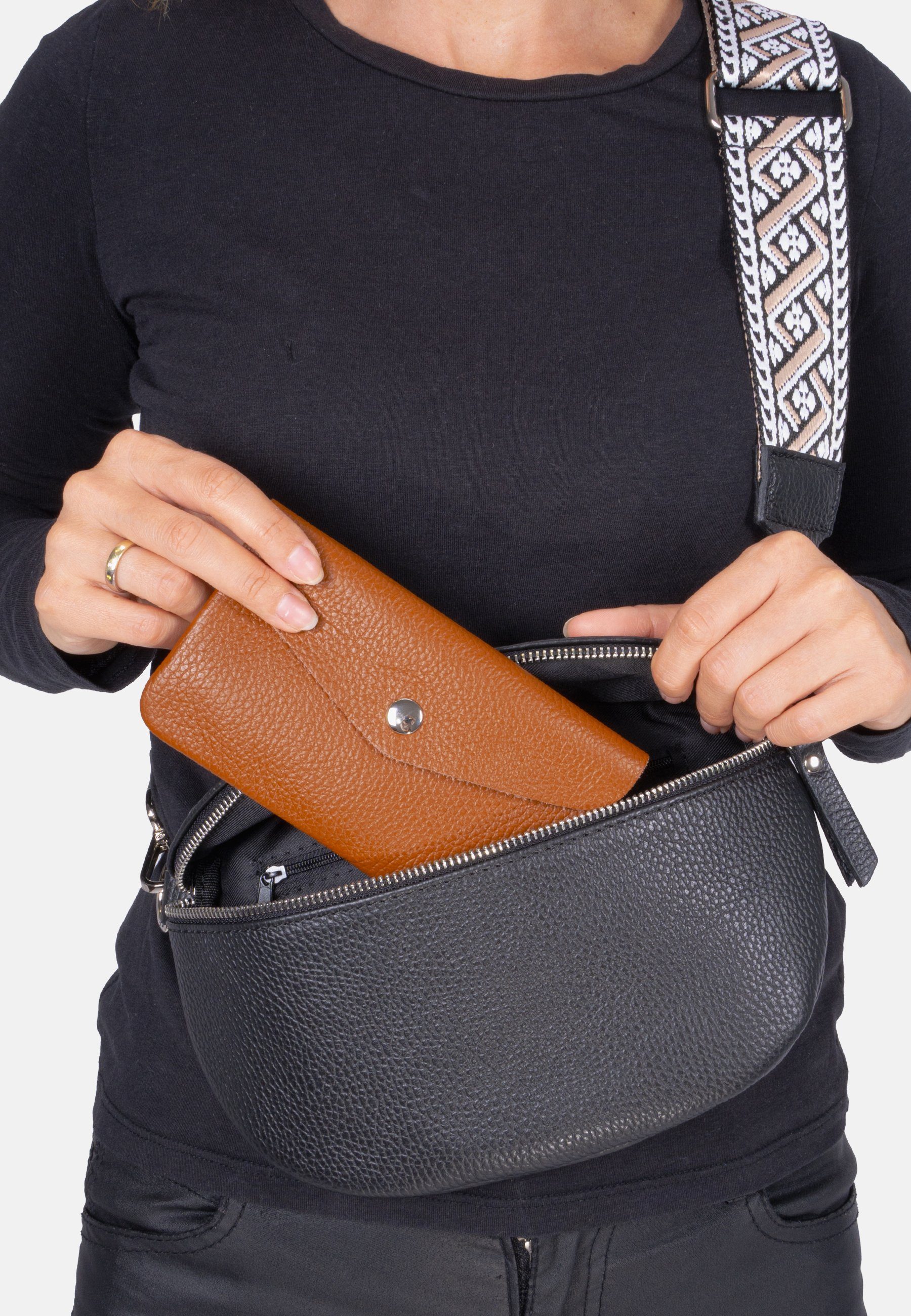 • Innen: 2 offene Fächer für Karten und 1 Fach mit Reißverschluss für Kleingeld