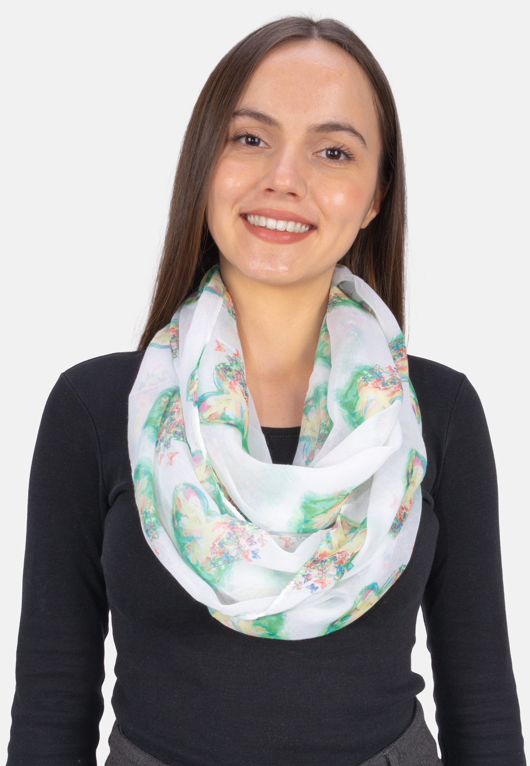 Besondere Merkmale | Dünn, Leicht & Weich: Damen Loop mit Herz- & Schmetterlingsmotiv |