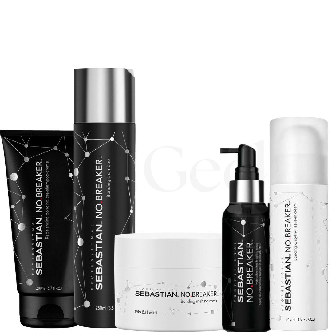 Das Sebastian Professional NO.BREAKER Komplett-Set ist eine innovative Haarpflegeserie, die speziell entwickelt wurde, um geschädigtes Haar zu reparieren, zu stärken und ihm neuen Glanz zu verleihen. Durch die einzigartige Bonding-Technologie werden Haarbindungen von innen heraus erneuert, was zu bis zu 20-mal stärkerem Haar führt. Produkte im NO.BREAKER Komplett-Set: Rebalancing Bonding Pre-Shampoo Creme (200 ml): Bereitet das Haar auf die Erneuerung der Haarbindungen vor und schützt vor Haarbruch während des Waschvorgangs. Bonding Shampoo (250 ml): Reinigt das Haar sanft und stärkt es, wodurch es weicher und geschmeidiger wird. Bonding Melting Mask (150 ml): Eine intensive Maske, die sichtbare Haarschäden repariert und das Haar tiefenwirksam nährt. NO.BREAKER Hybrid Bonding & Styling Leave-In Spray (145 ml): Ein 2-in-1-Produkt, das sowohl als Leave-In-Pflege als auch als Styling-Spray dient, um das Haar zu stärken und vor Haarbruch zu schützen. Bonding & Styling Leave-In Cream (150 ml): Bietet flexiblen Halt, schützt vor Frizz und Hitze bis zu 230°C und pflegt das Haar intensiv. Anwendungsempfehlung: Schritt 1: Verteilen Sie die Rebalancing Bonding Pre-Shampoo Creme gleichmäßig im nassen Haar, massieren Sie sie ein und spülen Sie sie gründlich aus. Schritt 2: Reinigen Sie das Haar mit dem Bonding Shampoo und spülen Sie es aus. Schritt 3: Tragen Sie die Bonding Melting Mask auf, lassen Sie sie 5 Minuten einwirken und spülen Sie sie anschließend aus. Schritt 4: Sprühen Sie das NO.BREAKER Hybrid Bonding & Styling Leave-In Spray auf das handtuchtrockene Haar und stylen Sie es wie gewünscht. Schritt 5: Verteilen Sie die Bonding & Styling Leave-In Cream in den Длинаn und Spitzen für zusätzlichen Schutz und Halt. Mit dem Sebastian Professional NO.BREAKER Komplett-Set erhalten Sie eine umfassende Haarpflegeroutine, die Ihr Haar von der Vorbereitung bis zum Styling optimal unterstützt. Erleben Sie stärkeres, gesünderes und glänzenderes Haar mit diesem innovativen System.