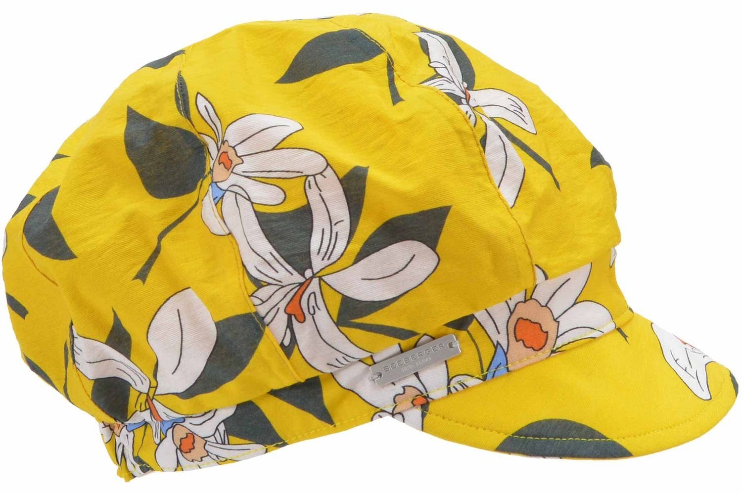 - Eine blumige Ballonmütze aus dem Hause Seeberger (Seeberger Pin seitlich)