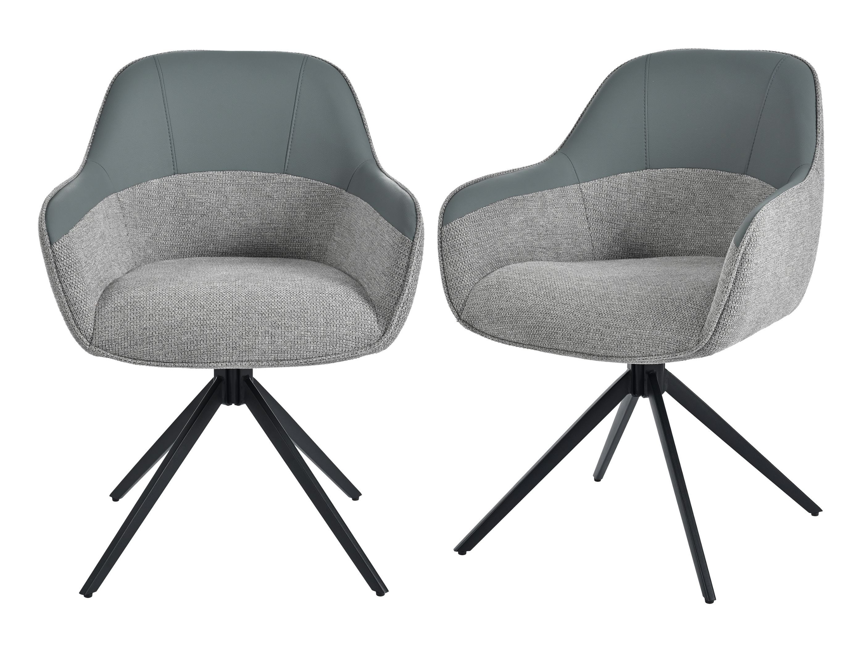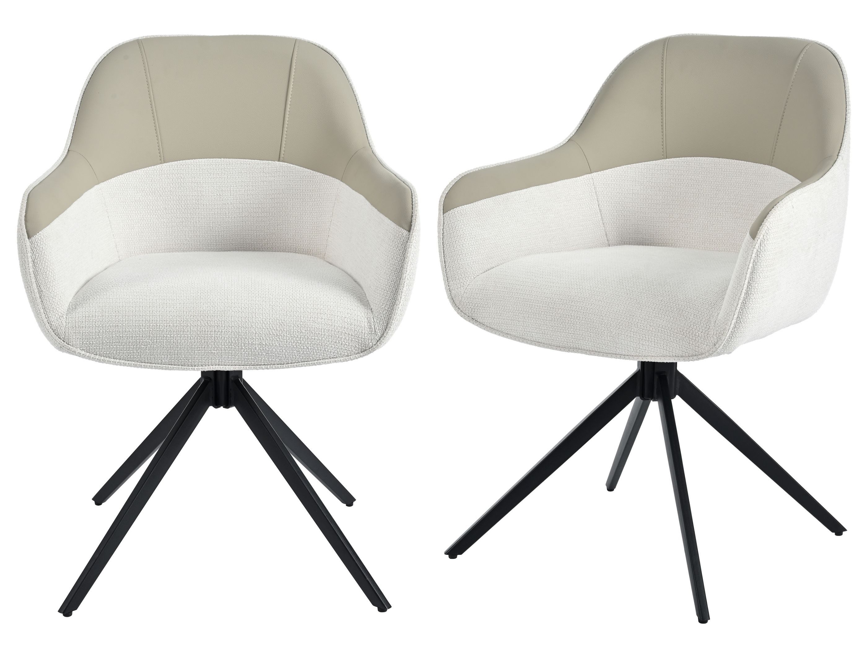 Verleihen Sie Ihrem Essbereich neuen Glanz mit diesem 2er-Set Drehstühlen. Die Kombination aus PU-Leder und Stoff wirkt edel und wohnlich zugleich. Die 9 cm dicke Polsterung sorgt für anhaltenden Sitzkomfort. Dank 360°-Drehung bewegen Sie sich flexibel am Tisch. Die stabilen Pyramidenbeine tragen bis zu 150 kg, während verstellbare Füße für sicheren Stand und Bodenschutz sorgen – perfekt für jedes moderne Zuhause.