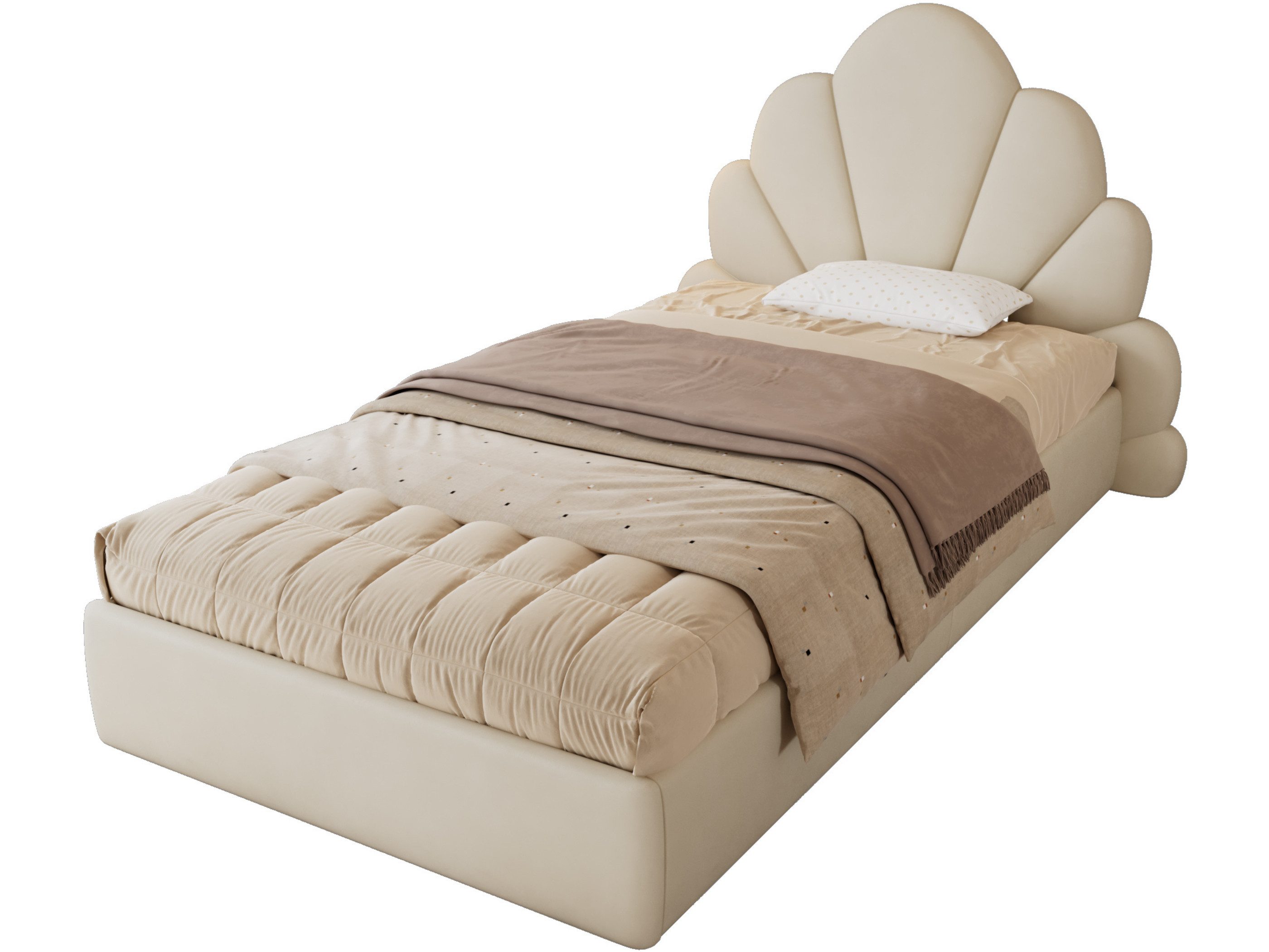 Eindrucksvolles, blütenblattförmiges Kopfteil: Das aufwendig gestaltete Kopfteil erinnert in seiner Form an eine sanft geöffnete Blüte und bringt ein Hauch Romantik und Verspieltheit ins Schlafzimmer. Mit seiner gepolsterten Oberfläche dient es gleichzeitig als bequeme Rückenlehne beim Lesen oder Entspannen im Bett. Die organische Formgebung macht das Bett zu einem stilvollen Blickfang, der Eleganz und Kreativität verbindet.