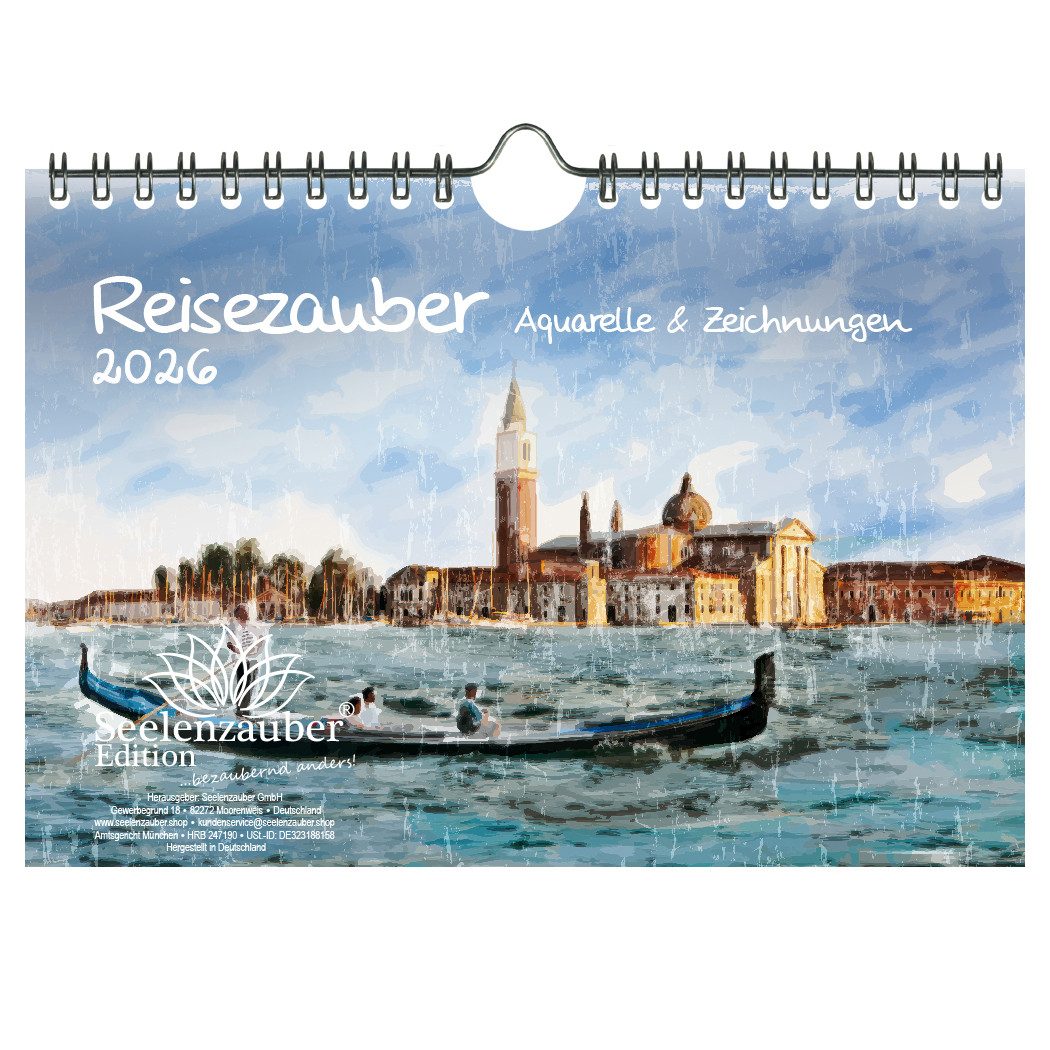 Seelenzauber Wandkalender Reisezauber Aquarelle DIN A5 Kalender für 2026 Ferne Länder