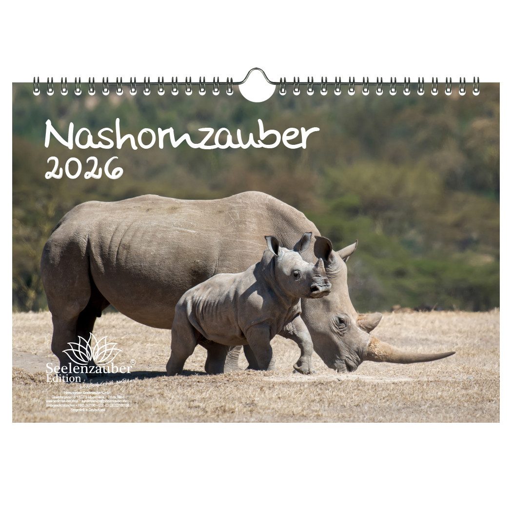 Seelenzauber Wandkalender Tierzauber Nashörner DIN A4 Kalender für 2026 Nashorn - Seelenzauber