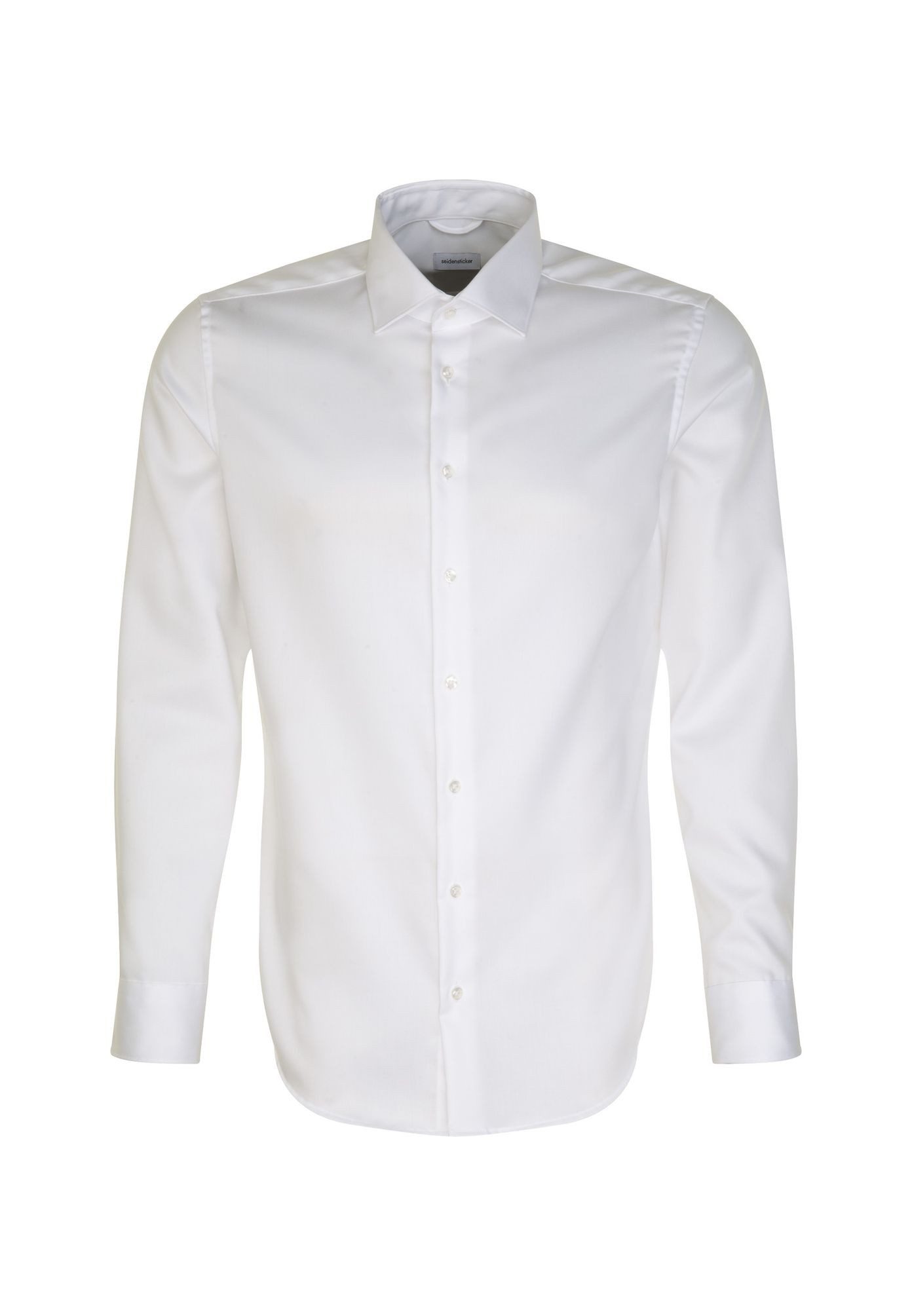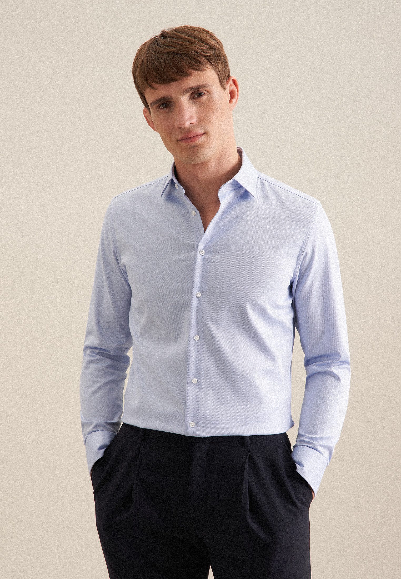 Vervollständigt Ihr Outfit und darf in keiner Garderobe fehlen: Dieses blickdichte Business Hemd aus der "SMART CLASSICS" Kollektion von Seidensticker überzeugt durch maskuline Ästhetik. Es kann im Homeoffice, im Büro oder bei Veranstaltungen getragen werden. Die Webart Twill aus 100% Baumwolle ist besonders hochwertig gewebt, was sie bequem zu tragen und mit schräg umlaufender Struktur außerordentlich griffig macht. Im Taillenbereich extra schmal geschnitten, sorgt das Business Hemd in X-Slim für einen außerordentlich figurbetonten Schnitt. Dieses Hemd verkörpert klassische Eleganz mit modernem Schliff. Stilsicher und elegant liegen Sie mit diesem Langarm-Business Hemd immer goldrichtig. Es wird durch weitenverstellbare Manschetten abgerundet. Hervorragend herausgearbeitet wird der universelle Business-Charakter durch einen Kentkragen. Dieses Business Hemd erfüllt unsere eigenen hohen Anforderungen an unsere Produkte in Bezug auf nachhaltige Rohstoff-Verwendung, verantwortungsvolle Herstellung und plastikfreie Verpackung. So übernehmen wir soziale Verantwortung.