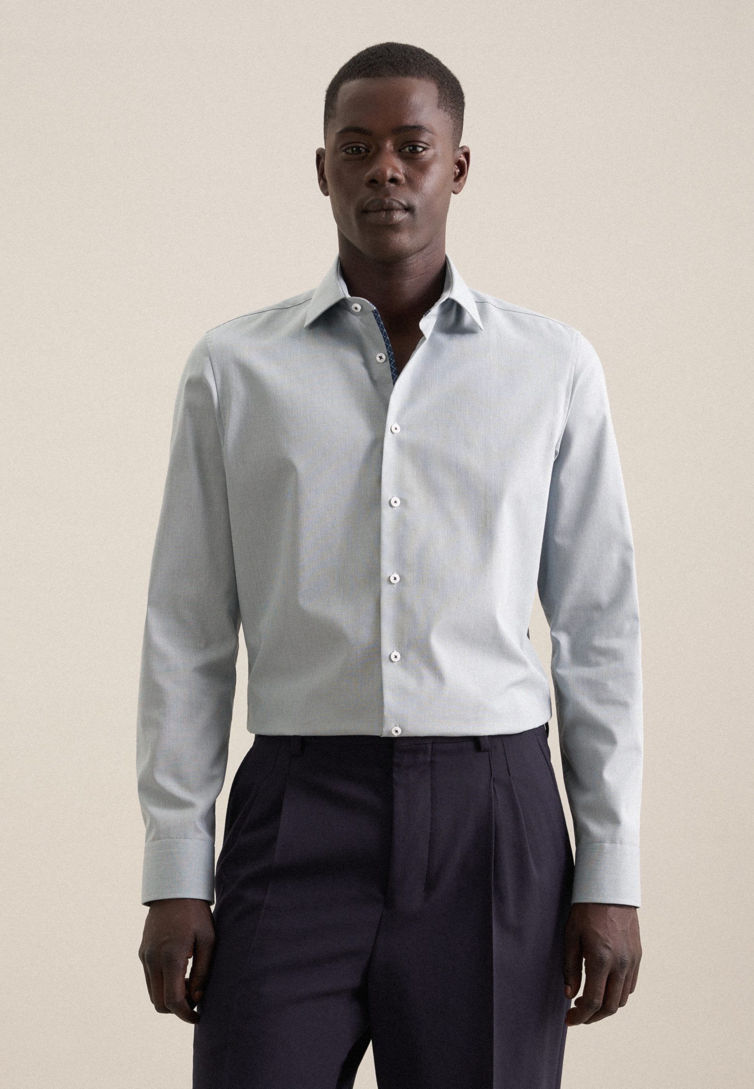 Maskuline Ästhetik: Sorgen Sie für ein stilvolles Erscheinungsbild mit dem Business Hemd von Seidensticker aus der "SMART ESSENTIALS" Kollektion. Ob Homeoffice, Freizeit, Büro oder Veranstaltungen - es ist ein eleganter Begleiter, der sich leicht kombinieren lässt. Die gewebte Struktur ist aus 100% Baumwolle - die perfekte Leinwand für Ihre ansprechenden Kombinationen. Mit einer dezenten Taillierung entspricht das Business Hemd im Slim fit dem derzeitigen Zeitgeist und fügt sich ideal in jedes Business-Outfit ein. Das schicke Struktur-Muster mit Patch im Kragen und Knopfleiste macht es zu einem absoluten Must-have. Dieses Hemd verkörpert klassische Eleganz mit modernem Stil. Für Liebhaber von eleganten Looks ist dieses Langarm-Business Hemd eine sehr gute Wahl. Weitenverstellbare Manschetten perfektionieren das Gesamtbild. Ein Kentkragen betont den universellen Business-Charakter. Эко-товары liegt uns besonders am Herzen - dieses Business Hemd entspricht daher unseren hohen Ansprüchen an verantwortungsvolle Rohstoffe, soziale Verantwortung, eine nachhaltige Herstellung, sowie eine plastikfreie Verpackung.