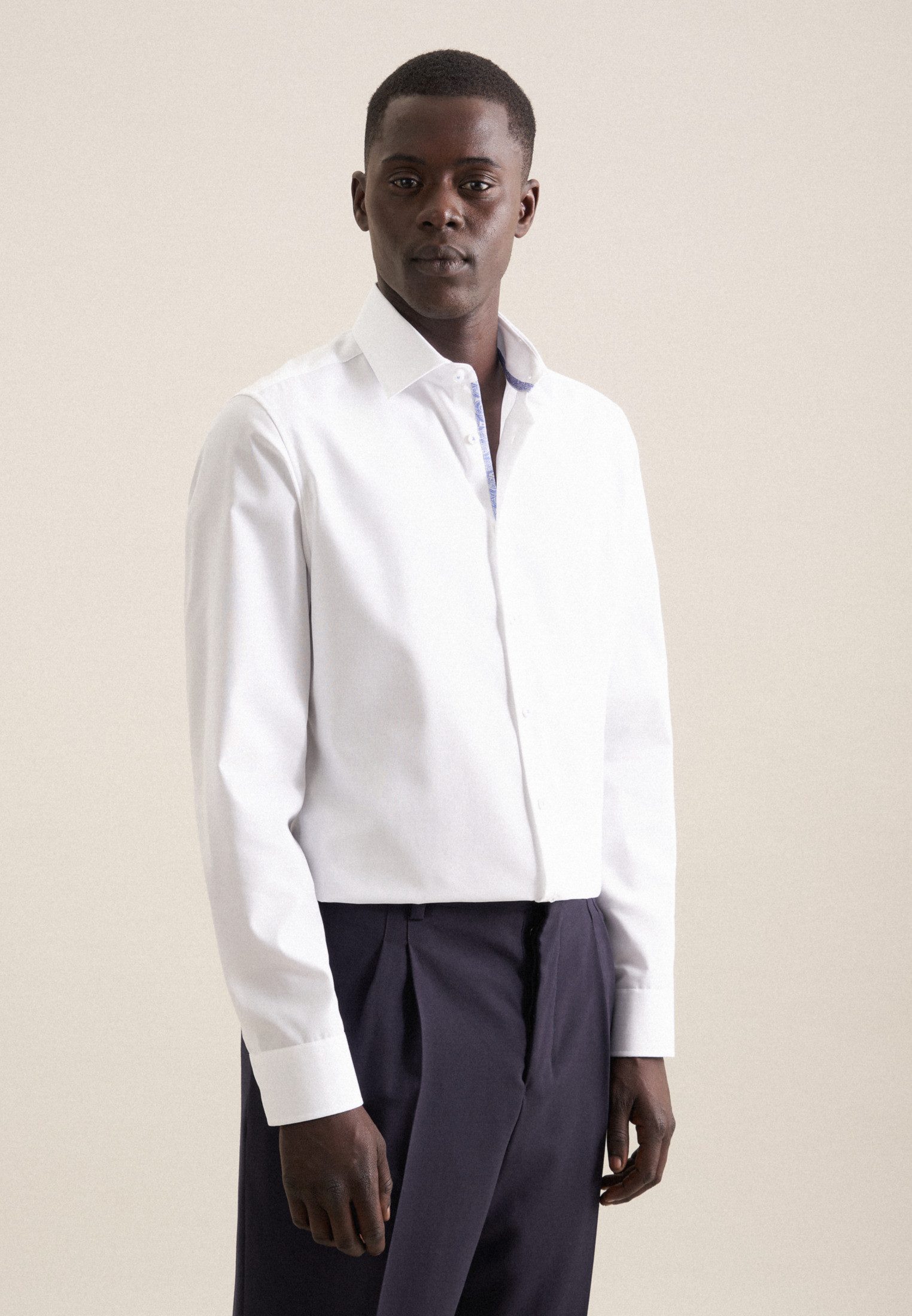 Maskuline Ästhetik: Das Business Hemd von Seidensticker aus der "SMART ESSENTIALS" Kollektion erweitert Ihre Garderobe um einen hochwertigen Look, der den Geist der Zeit trifft. Es kann in der Freizeit, im Homeoffice, im Büro oder bei Veranstaltungen zu Ihrer schlichten Eleganz beitragen. Popeline wird mit hoher Dichte gewebt und ergibt daher ein extrem widerstandsfähiges Material. In Kombination mit 100% Baumwolle ist es bestens geeignet für pflegeleichte Business-Outfits. Im Taillenbereich extra schmal geschnitten, sorgt das Business Hemd in X-Slim für einen außerordentlich figurbetonten Schnitt. Dieses Hemd verkörpert zeitlose Eleganz mit modernem Stil. Stilsicher und elegant liegen Sie mit diesem Langarm-Business Hemd immer richtig. Weitenverstellbare Manschetten runden das Gesamtbild ab. Durch den Kentkragen wird der universelle Business-Charakter hervorgehoben. Wir übernehmen soziale Verantwortung - dieses Business Hemd entspricht unseren hohen Ansprüchen an nachhaltigen Rohstoff-Anbau sowie verantwortungsvolle Herstellung und wird ohne Plastik verpackt.