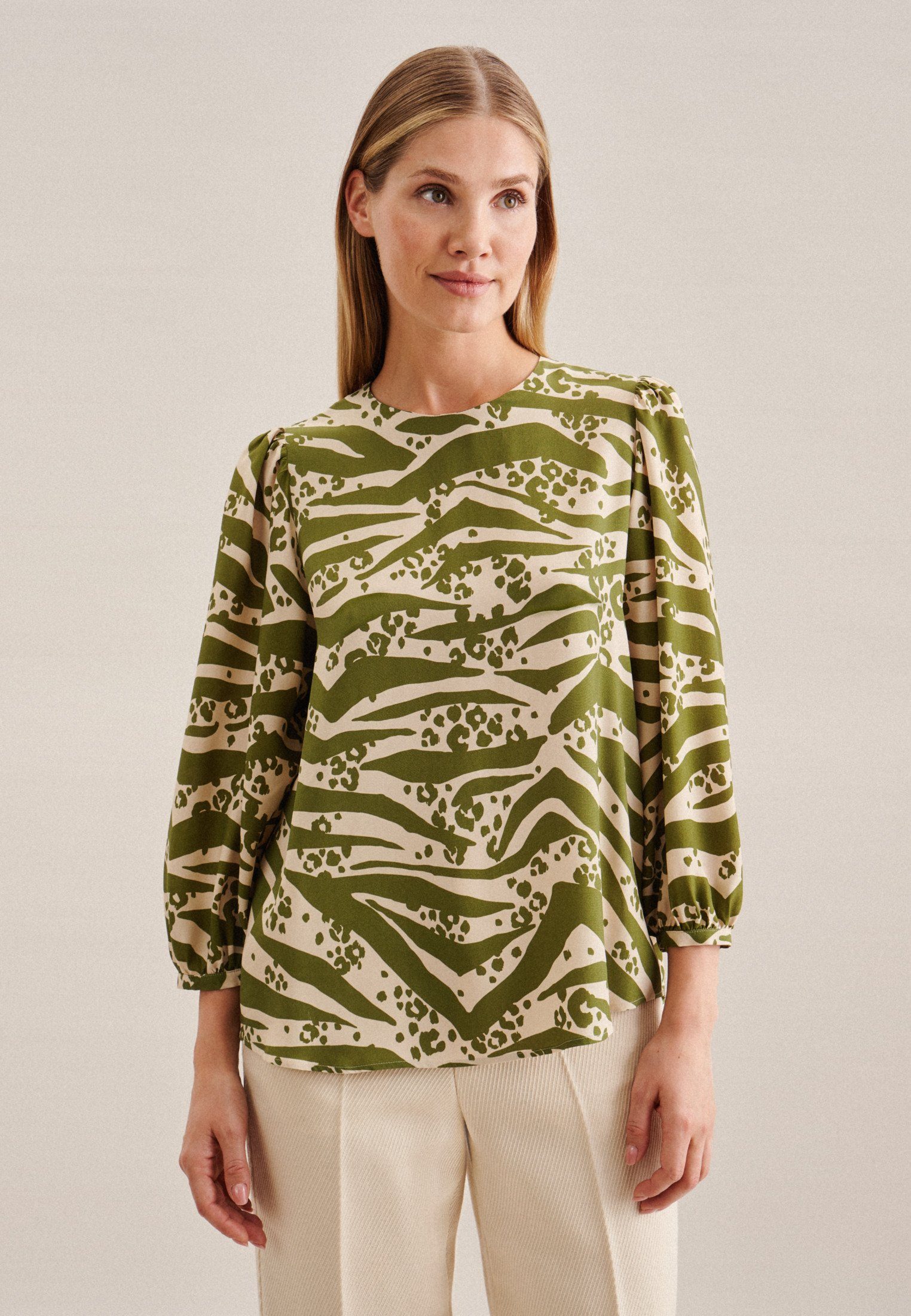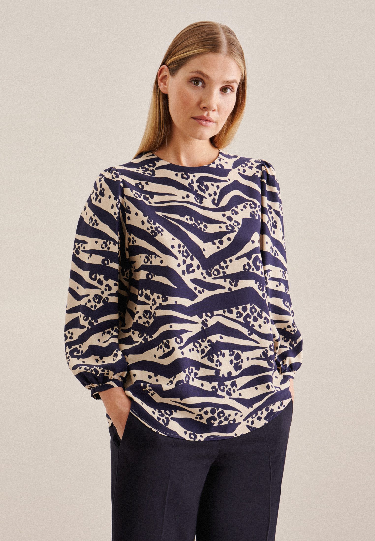 Vervollständigt Ihr Outfit und sollte in keiner Garderobe fehlen: Diese Shirtbluse aus der "The Statement Prints" Kollektion von Seidensticker überzeugt durch feminine Eleganz. Viskose stellt sich als ideale Leinwand für Ihre ansprechenden Outfit-Variationen dar. In Kombination mit 100% Viskose ist sie besonders ansprechend. Im modernen Schnitt liegt die Shirtbluse leger und weniger eng an und bietet so optimalen Tragekomfort. Das raffinierte Animal-Muster verleiht dazu die passenden modischen Nuancen. Zeitloser Chic gepaart mit aktuellem Selbstbewusstsein - eine edle Bluse für viele Gelegenheiten. Bei dieser 7/8-Arm-Shirtbluse werden Stilsicherheit und Eleganz besonders hervorgehoben. Hervorragend hervorgehoben wird der smarte Charakter durch einen Rundhals-Ausschnitt. Als interessantes Detail sind zudem edle Perlmuttknöpfe aufgenäht worden.