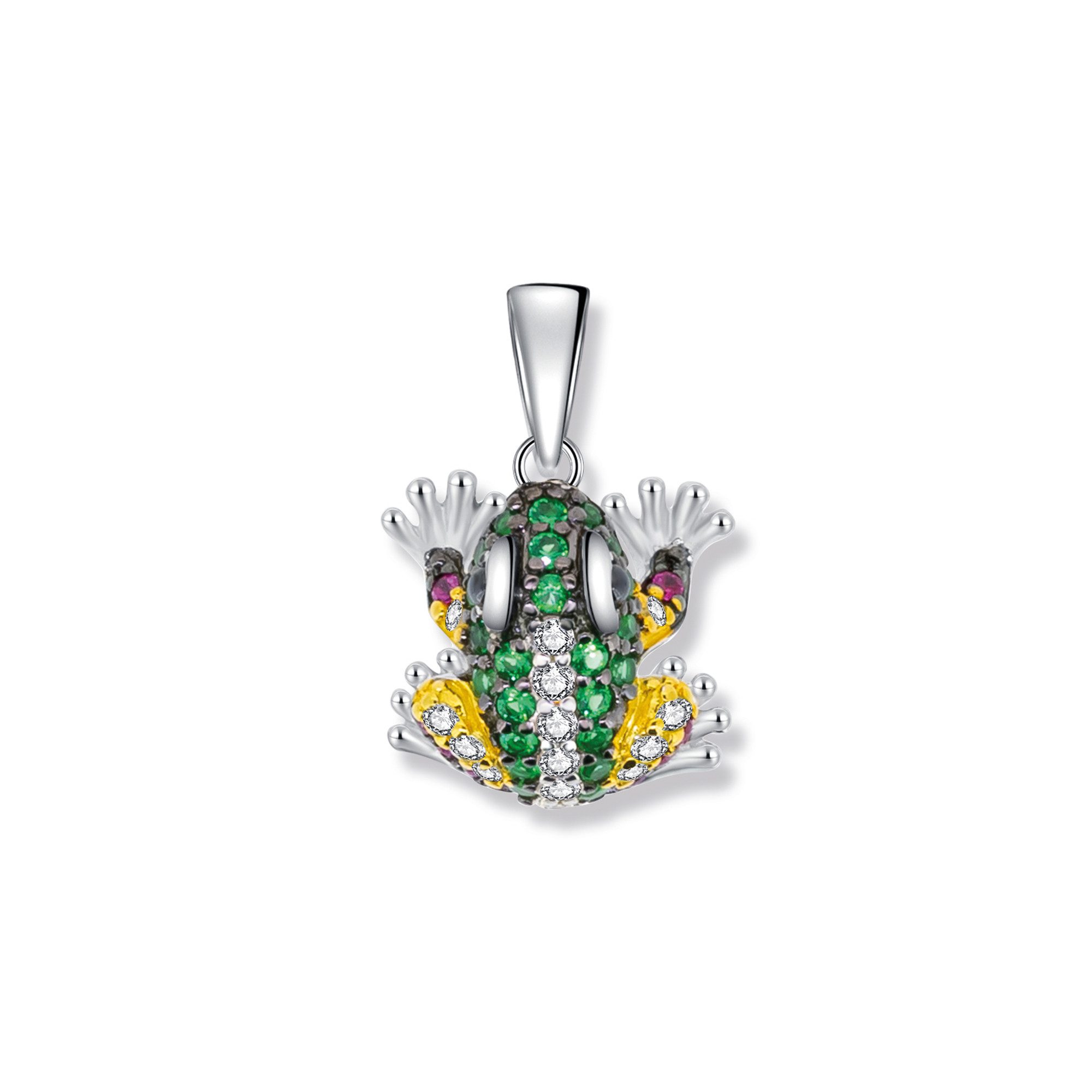 Der Freddy Frosch Anhänger ist ein hinreißendes Juwel, das die Schönheit der Natur auf stilvolle Weise einfängt. Hergestellt aus hochwertigem 925 Sterling Silber, wurde dieser Anhänger aufwändig rhodiniert, geschwärzt und vergoldet, um einen einzigartigen visuellen Effekt zu erzeugen. Die funkelnden Zirkonia-Steine in verschiedenen Farben, die den Anhänger verzieren, schimmern und glänzen im Licht. Sie fangen die Farben der Natur auf eine zauberhafte Art ein und verleihen dem Anhänger eine lebendige Ausstrahlung. Die Kombination aus geschwärztem, vergoldetem und rhodiniertem Silber verleiht dem Anhänger nicht nur eine visuelle Tiefe, sondern auch eine besondere Robustheit. Die Rhodium-Beschichtung sorgt dafür, dass der Anhänger seinen strahlenden Glanz über lange Zeit bewahrt.
