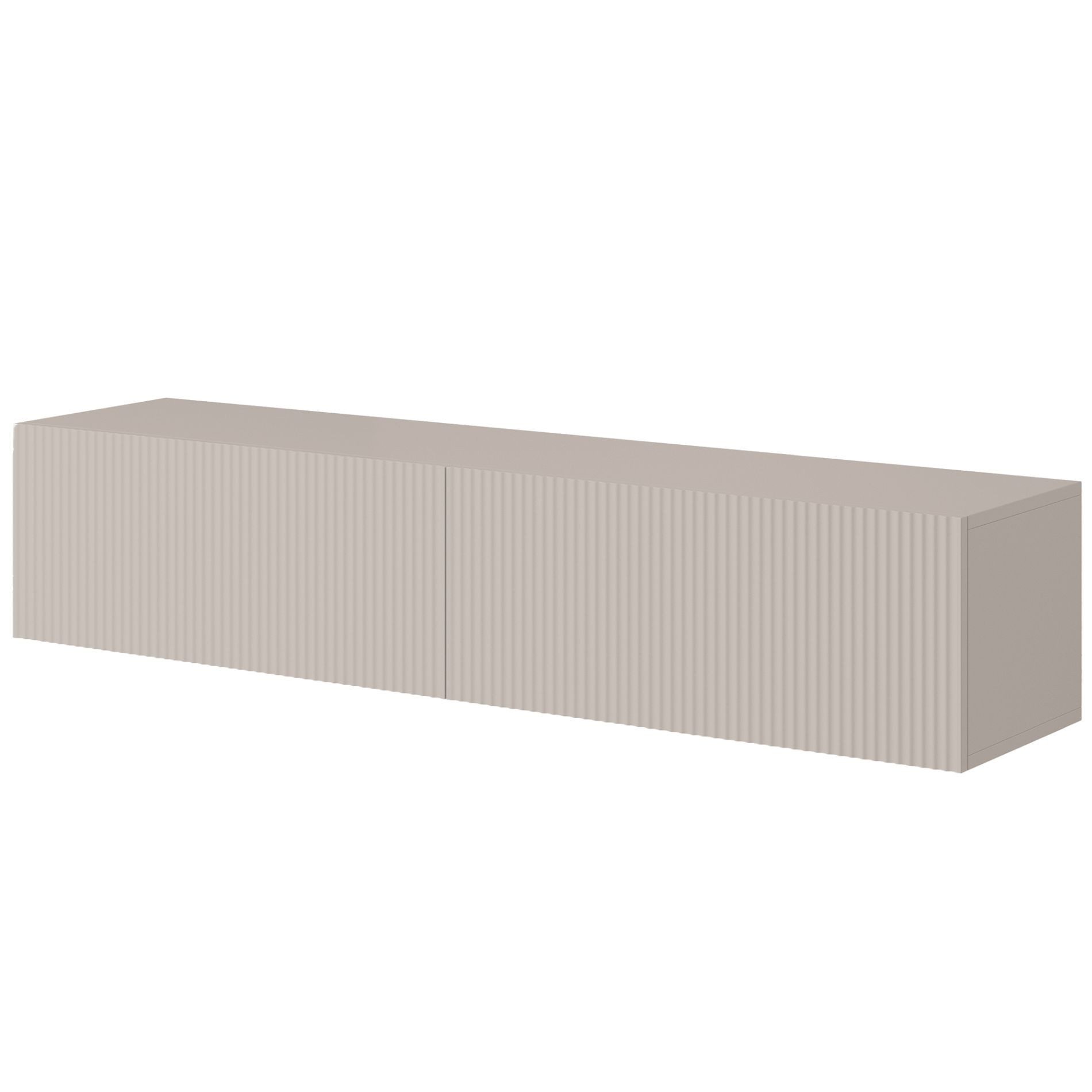 Das TV-Hängeboard Veldio bringt modernen Stil und einen praktischen Stauraum in Ihr Wohnzimmer. Die geriffelten Fronten verleihen dem Schrank eine elegante, zeitgemäße Optik und lassen den Raum größer und heller wirken.Die geriffelten Oberflächen haben auch den Vorteil, dass Fingerabdrücke und kleine Kratzer weniger auffallen – ideal für einen gepflegten, einladenden Wohnbereich.