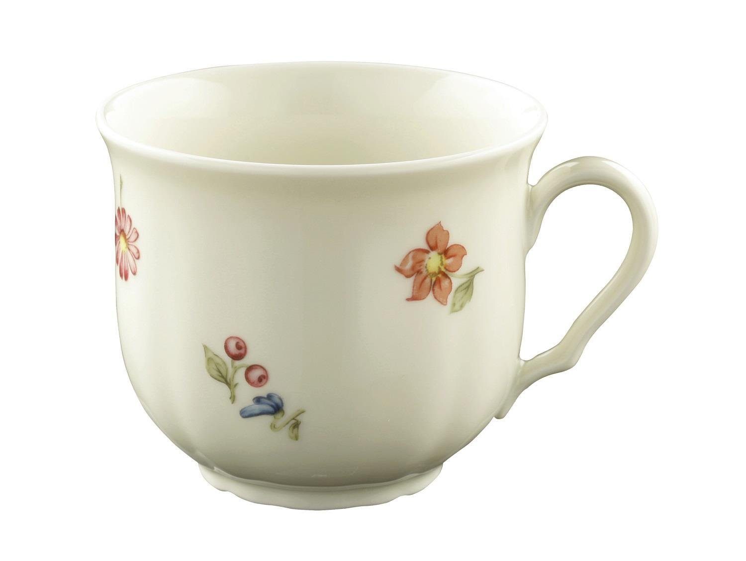 Genießen Sie Ihre Kaffeepause mit der stilvollen Seltmann Weiden Marie Luise Blütenmeer Kaffeeobertasse. Diese exquisite Tasse in warmem Elfenbeinton ist mit zierlichen, bunten Motiven von Blumen, Blüten und Beeren verziert und bringt eine elegante und fröhliche Atmosphäre auf Ihren Kaffeetisch.