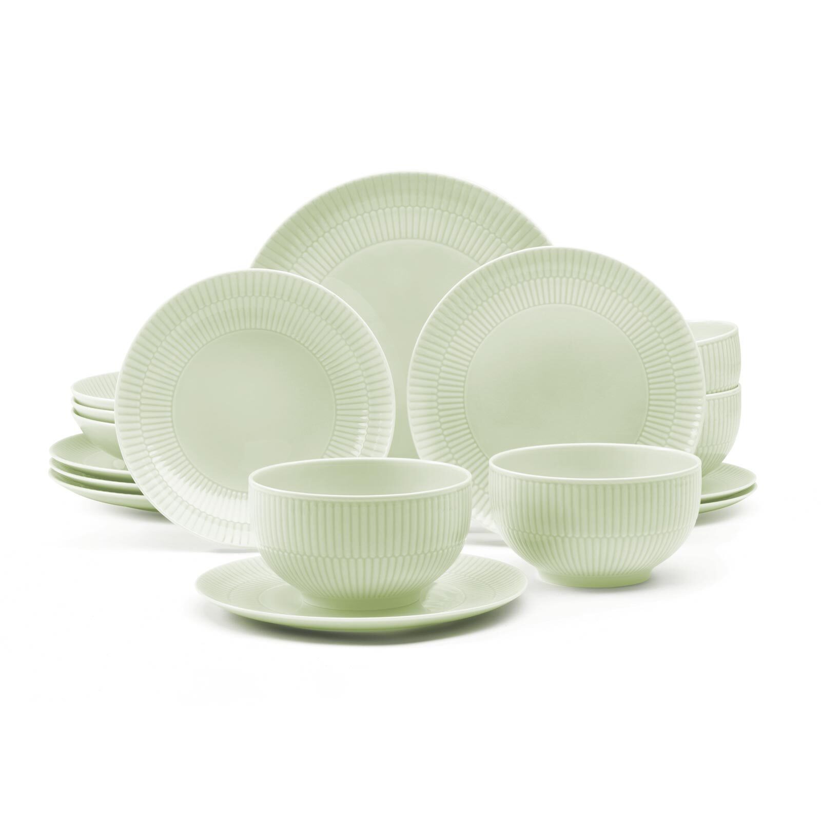 Das Set enthält: - 4x Frühstücksteller - 4x Müslischale - 4x Speiseteller - 4x Suppenteller