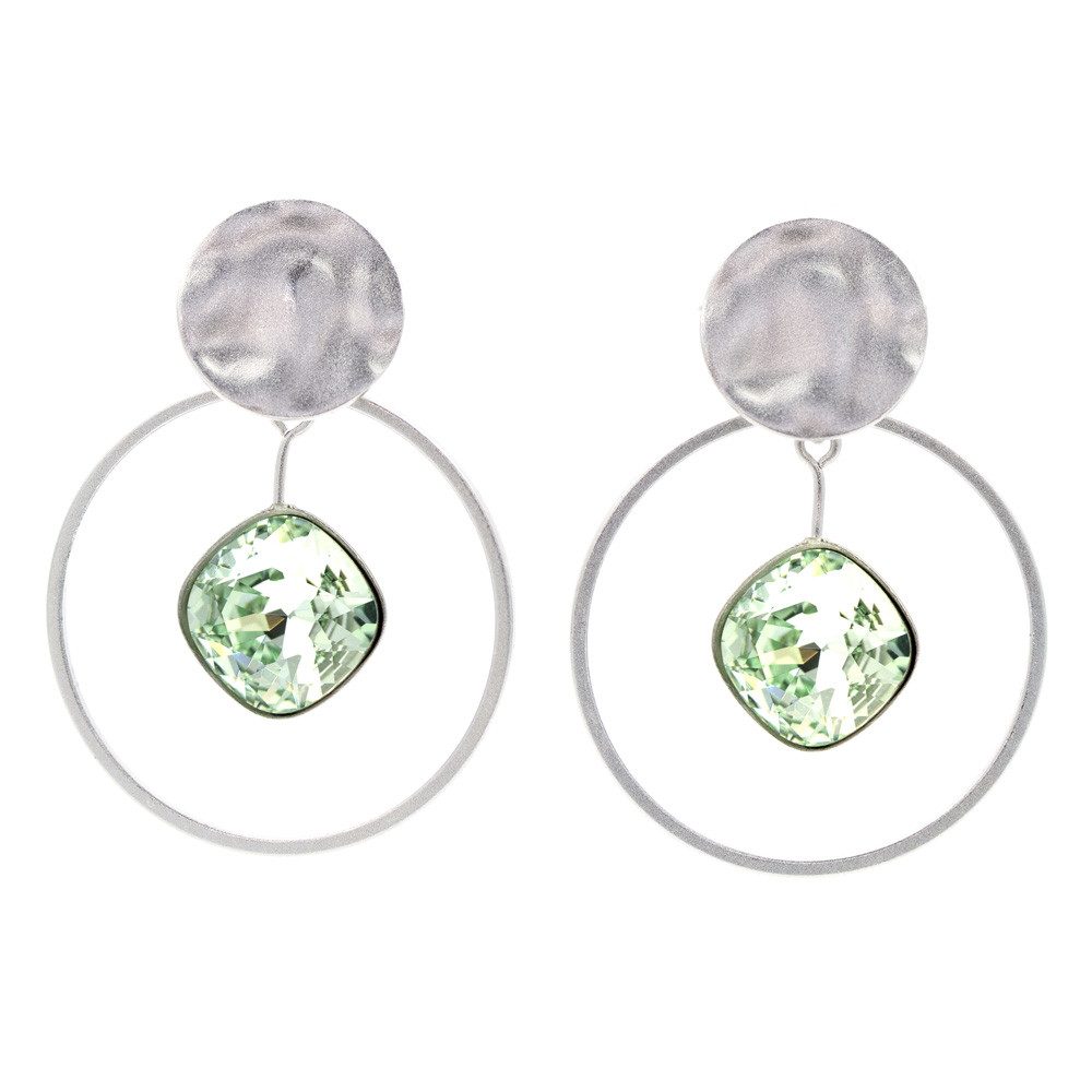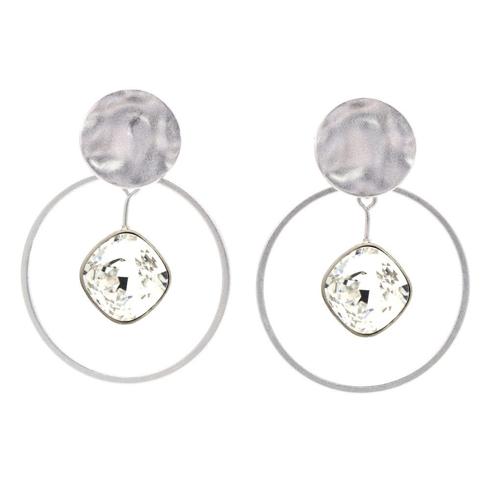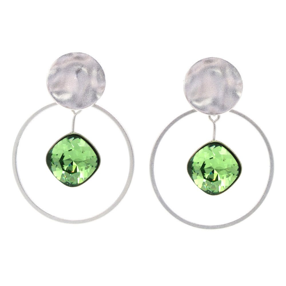 Diese eleganten Ohrringe bestehen aus matt rhodiniertem oder vergoldetem Messing und haben ein leicht gewelltes Metall-Plättchenoberteil. Der Anhänger ist in Kreisform gestaltet und mit einem edlen Kristall in den Maßen 10x10 mm verziert. Die Stecker sind aus 925er Silber gefertigt. Die Ohrringe haben eine Gesamtlänge von ca. 3,5 cm. Wir fertigen gemäß Ihrer Bestellung alle Schmuckstücke in unserer Berliner Werkstatt von Hand. Bitte vermeiden Sie sogenannte Probier- oder Auswahlsendungen, damit es nicht zu unnötigen Retouren kommt – unserer Arbeit und der Umwelt zuliebe!