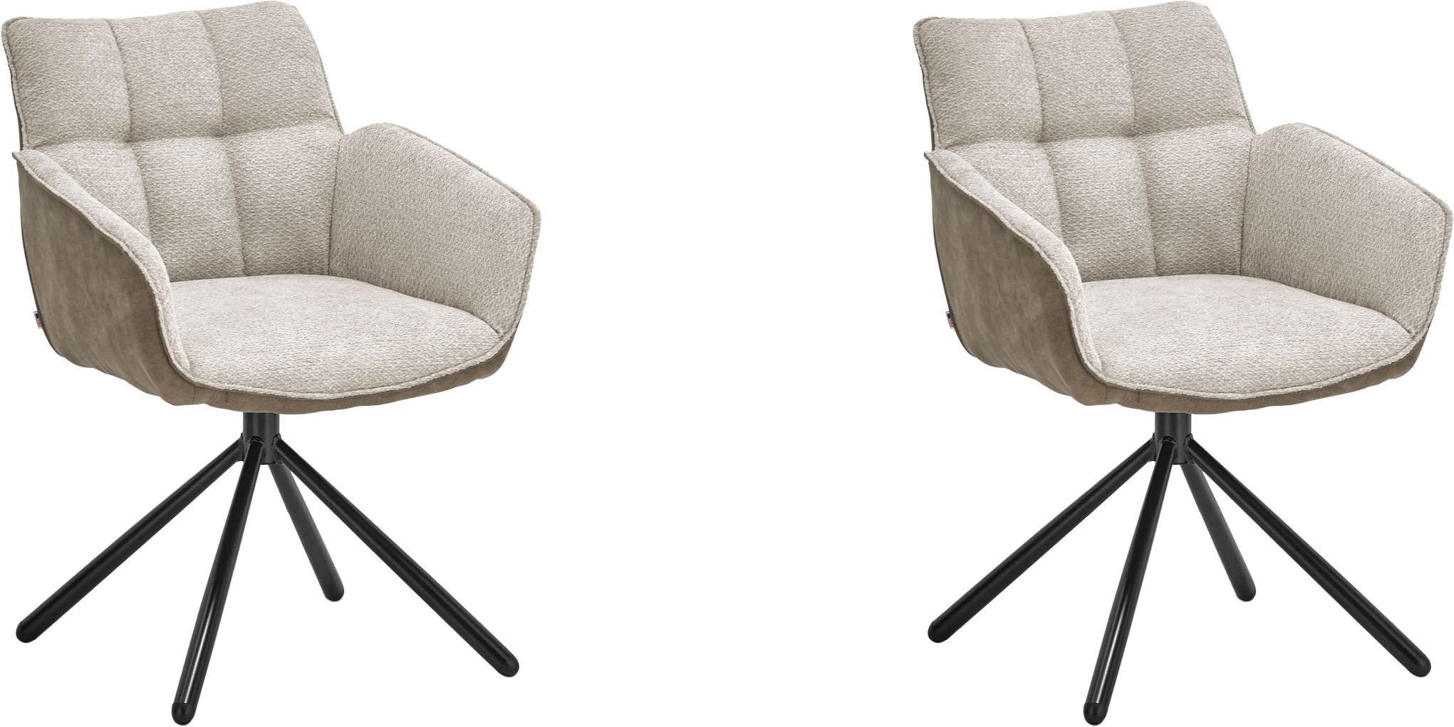 Mit diesen Esszimmerstühlen »Frisco-B« von set one by Musterring kommst du der Wohlfühl-Atmosphäre wie in deinem Lieblings-Restaurant einen Schritt näher. Wenn der Stuhl nebenan oder die Tischbeine im Weg sind, ist es gar nicht so einfach Platz zu nehmen. Die Lösung hierzu ist die Drehfunktion, mit der man sich setzen und aufstehen kann, ohne den Stuhl vorher verrücken zu müssen. Auch wenn du länger sitzen bleibst, ist er komfortabel, denn sowohl die Arm- und Rückenlehne als auch die Sitzfläche sind angenehm gepolstert.