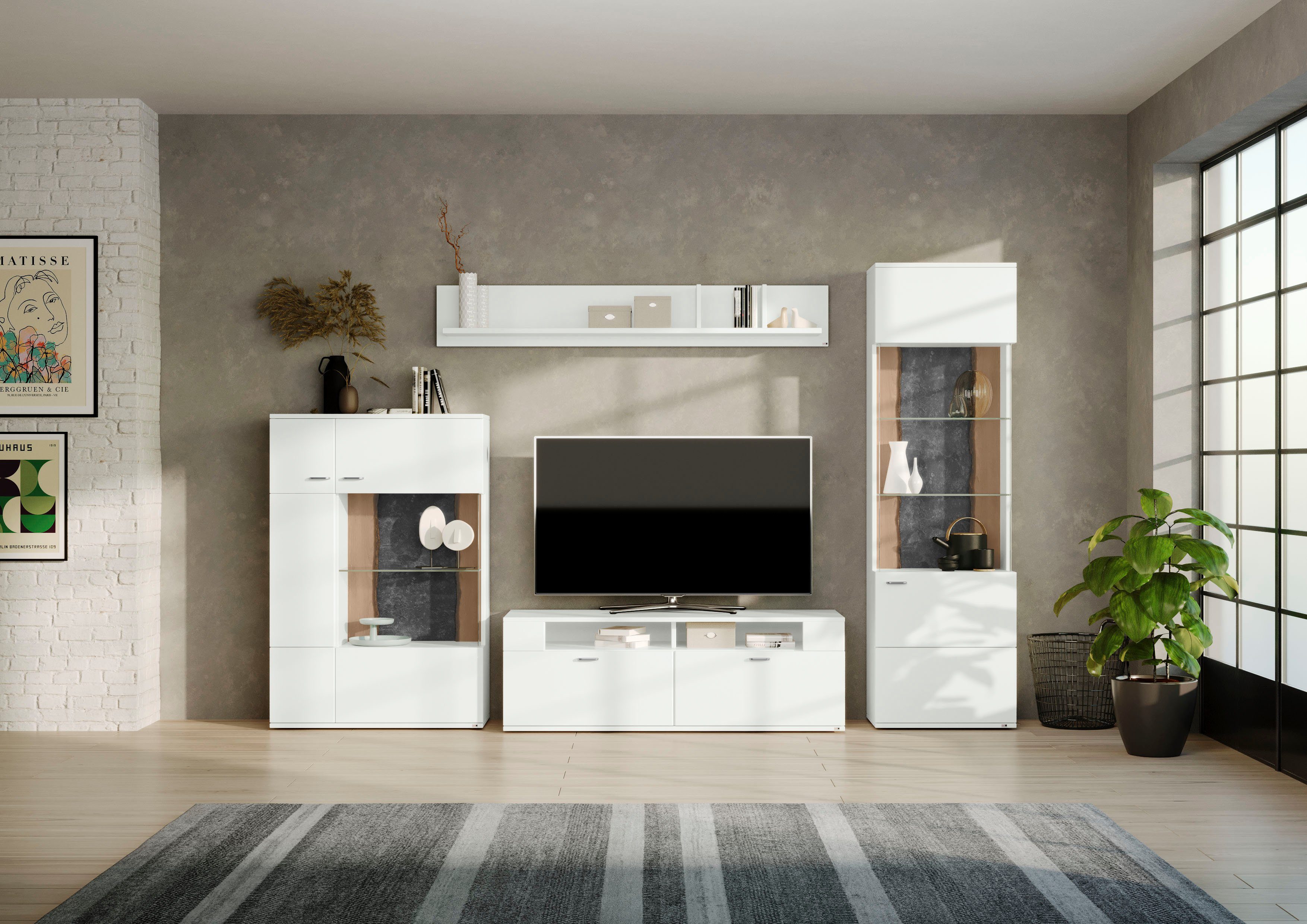 • Besteht aus 1 Vitrine, 1 Lowboard, 1 Highboard, 1 Wandboard