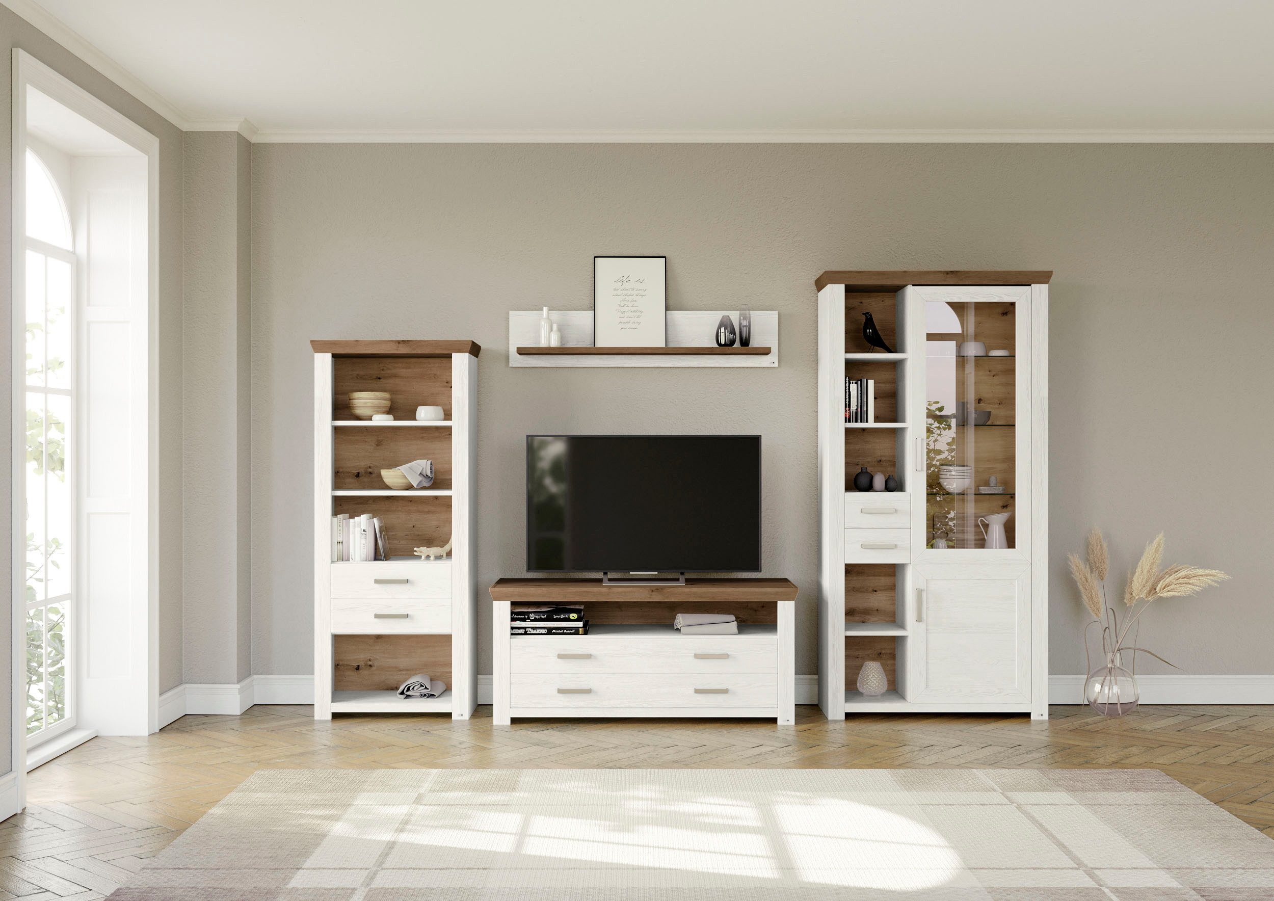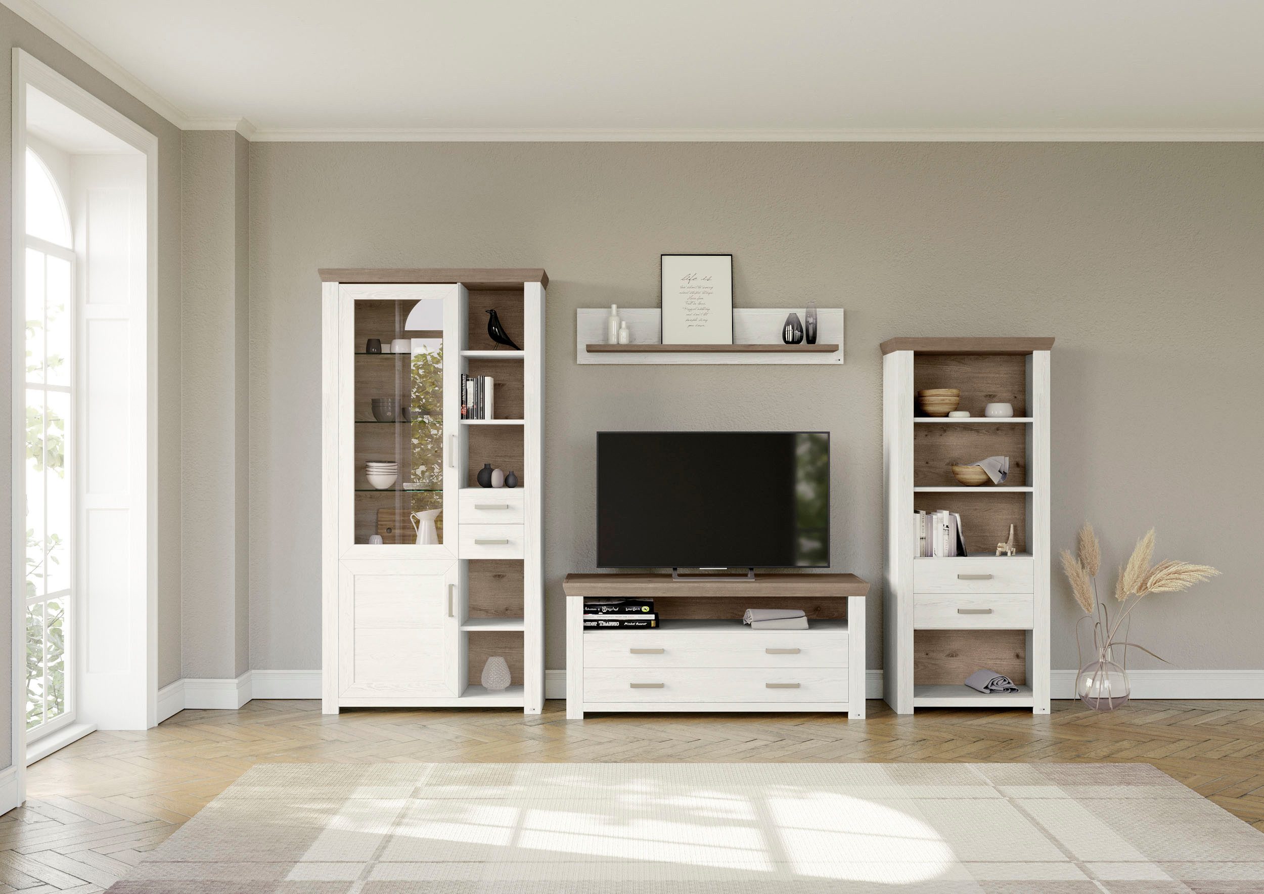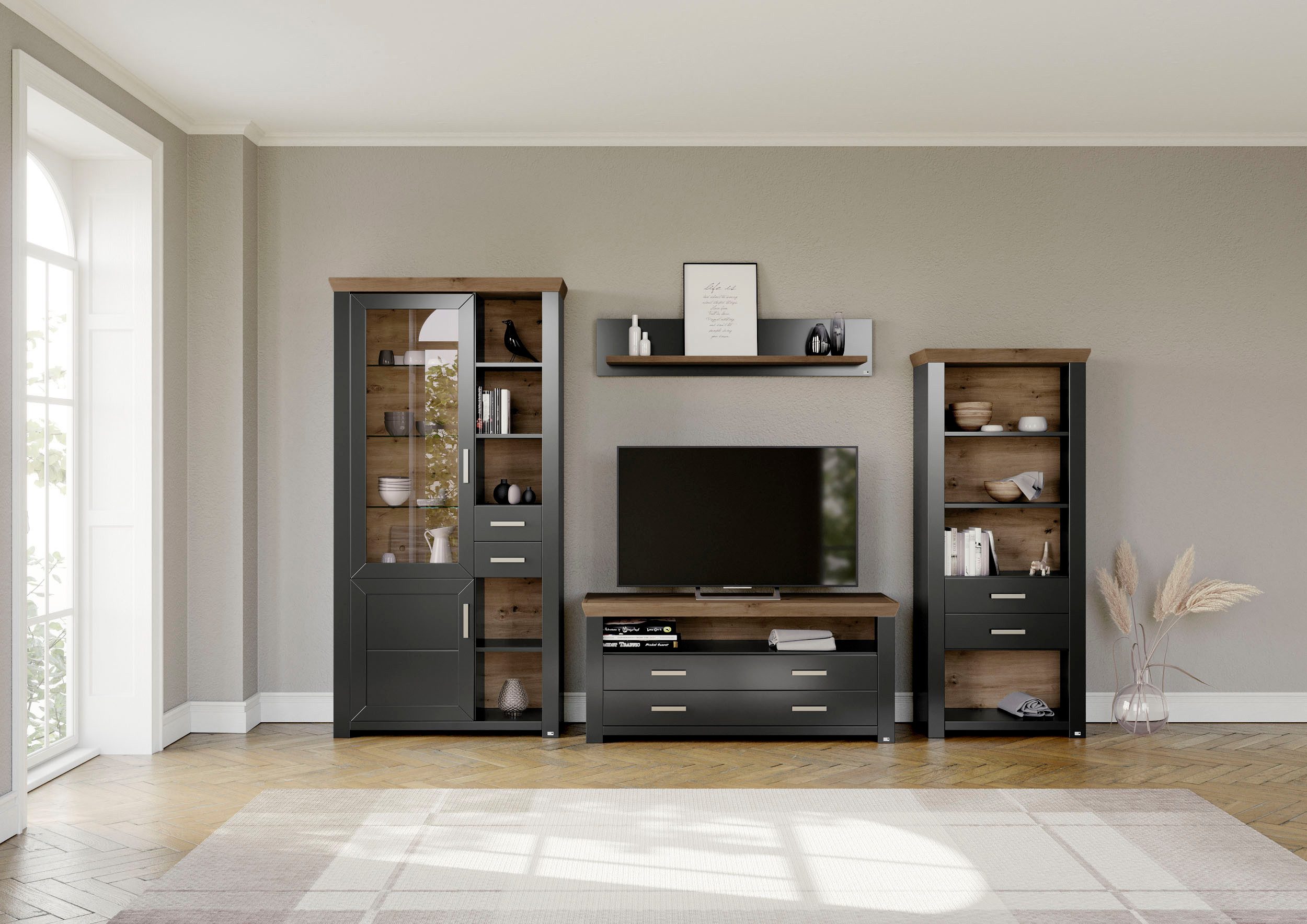 Hinweis Lieferumfang | Das Set beinhaltet je 1 Vitrine, Regalschrank, Lowboard und Wandpaneel, Beleuchtung muss dazu bestellt werden |