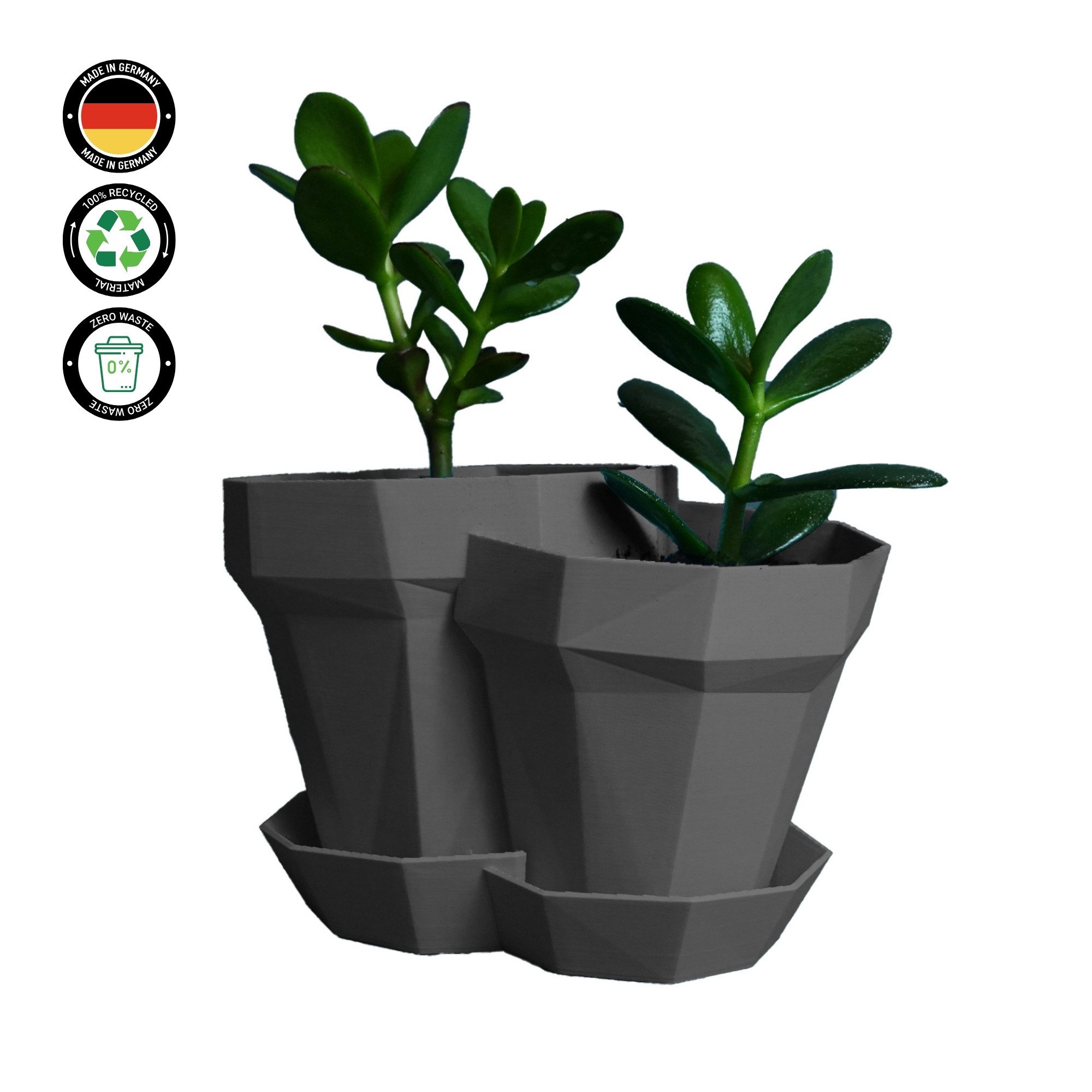 Herausragendes Design: Unsere 3D-gedruckten Blumentöpfe mit integriertem Unterteller sind ein echter Blickfang. Das innovative Design setzt überall den perfekten Akzent.