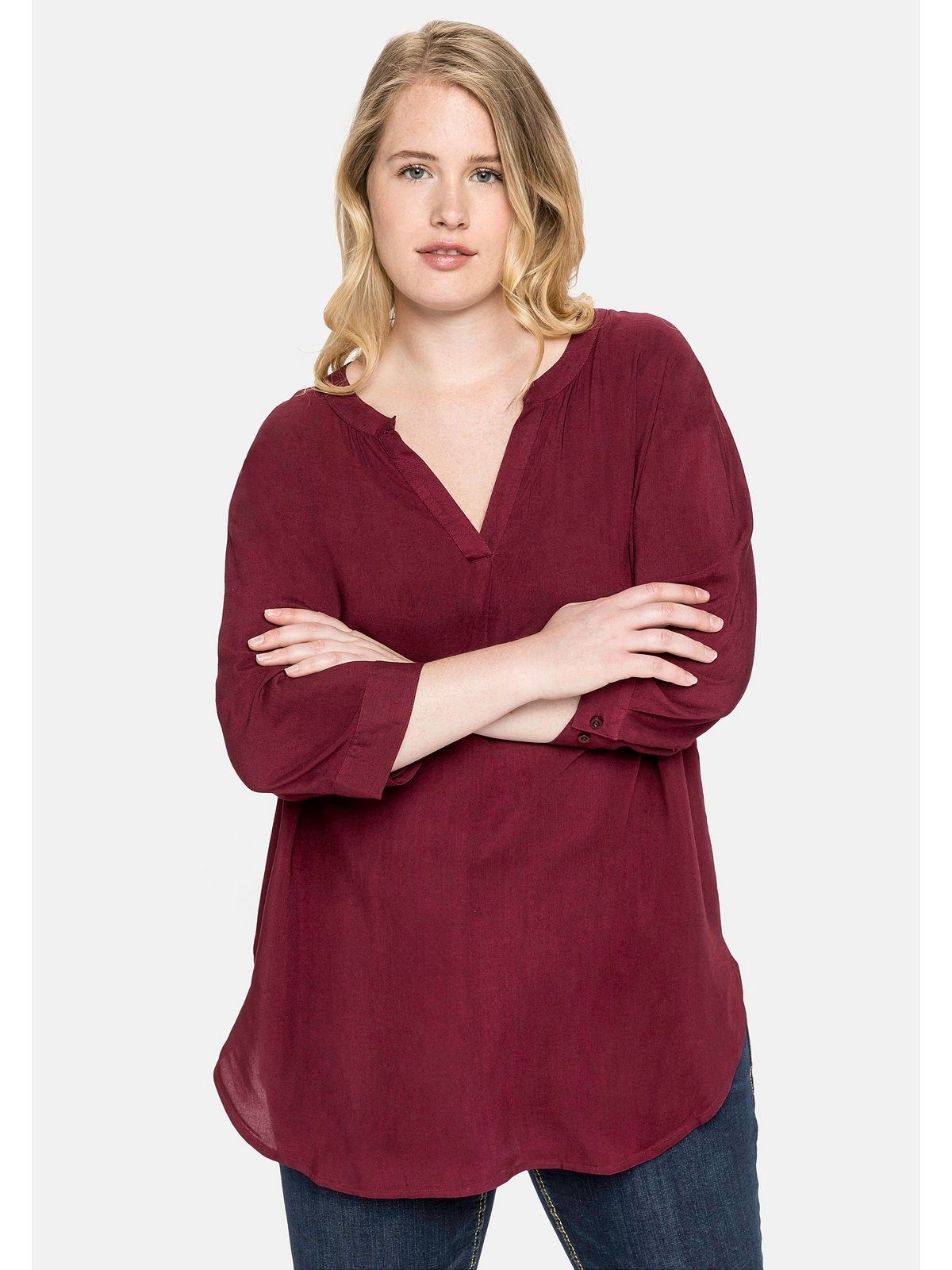 Material, Farbe, Schnitt und Passform sind sehr schön und vorteilhaft fürs Büro. К сожалению, war die Tunika bei mir im Brustbereich etwas eng, deshalb ging sie schweren Herzens zurück.