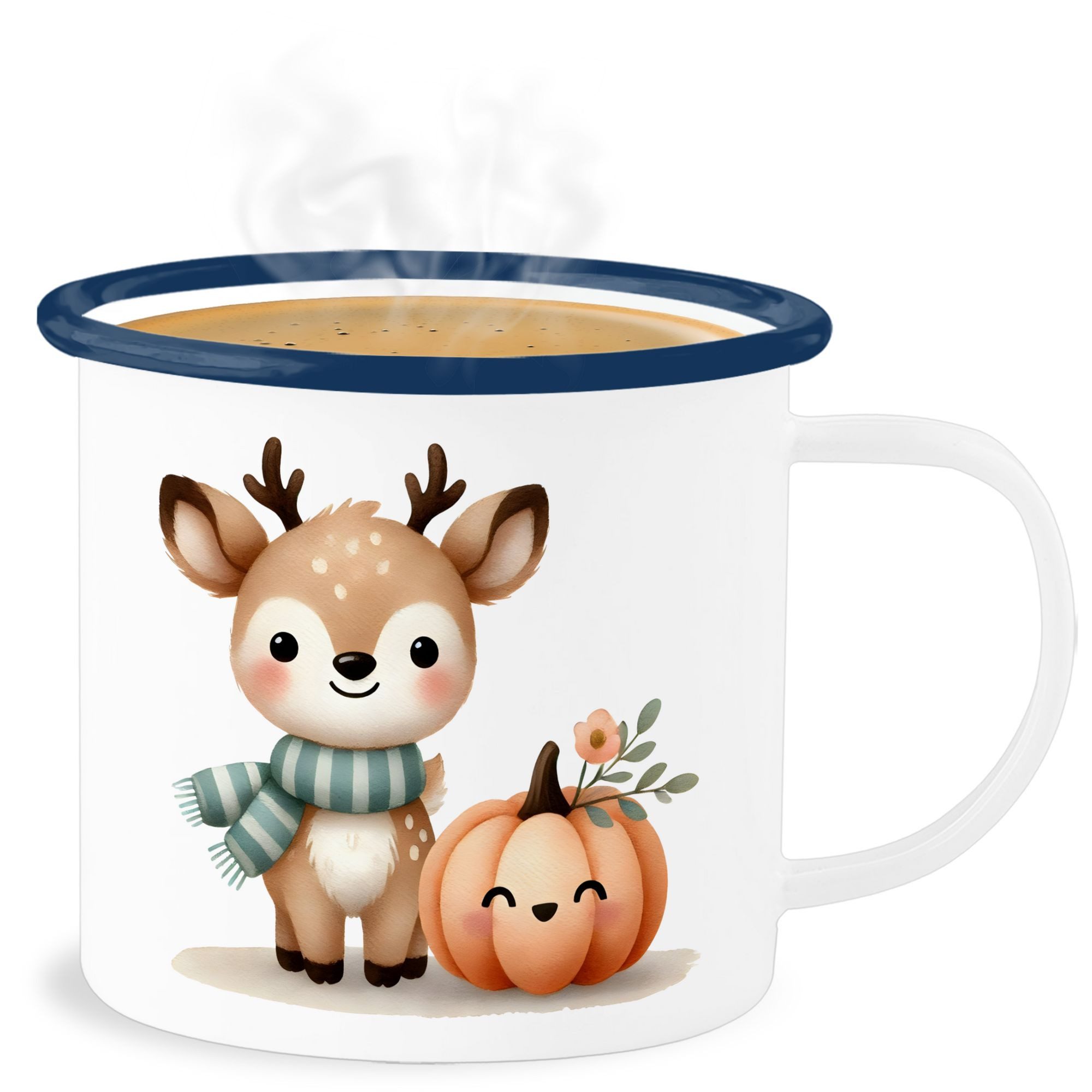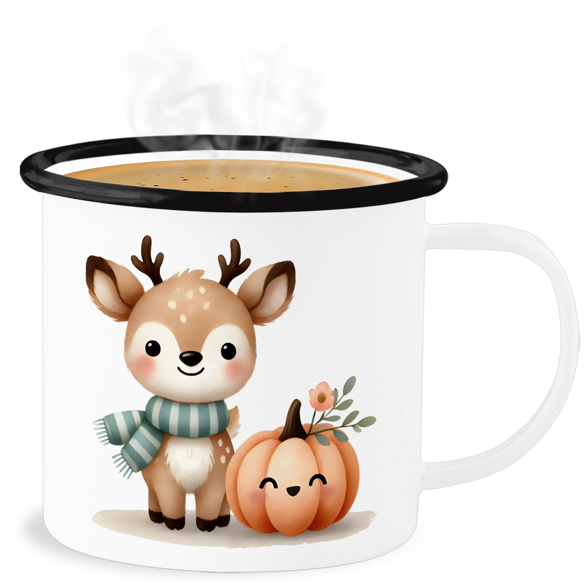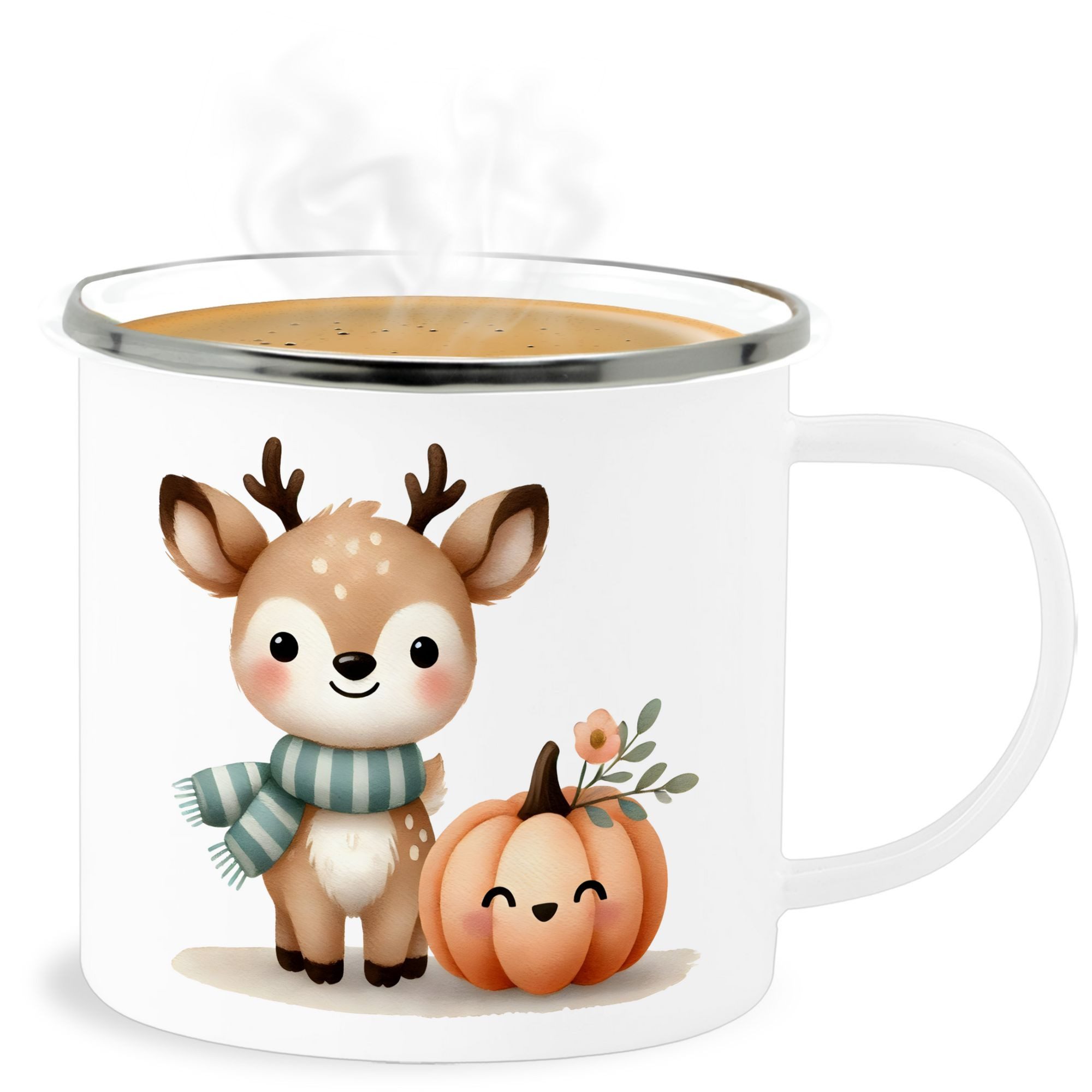 Shirtracer Süßes Reh mit Kürbis | Herbstliches Baby und Kinder Motiv | Niedliches Design für Halloween und Herbst | Halloween Geschenk und herbstliche Dekoration Emaille Becher Blechbecher