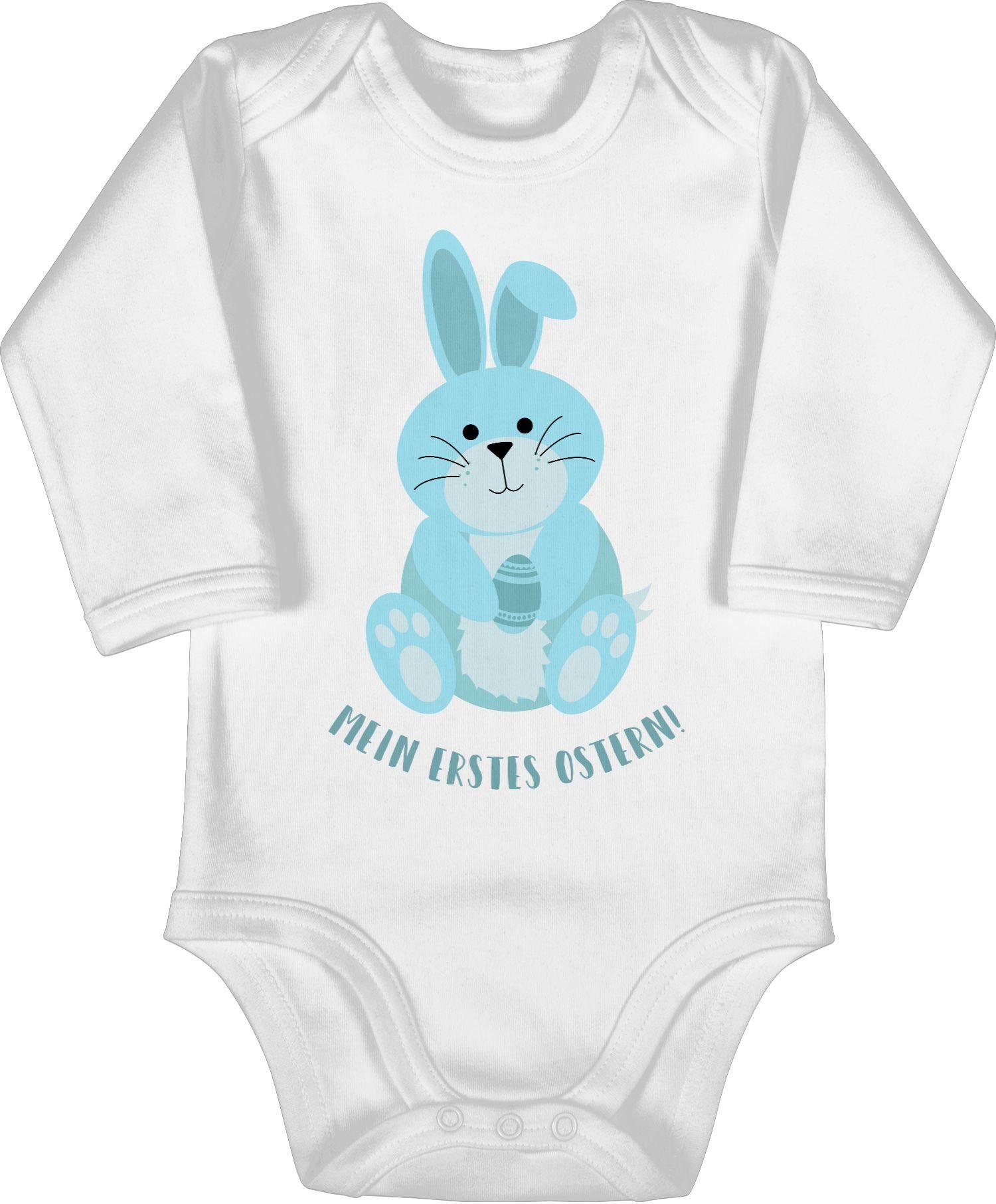 Das verspielte Motiv "Mein erstes Ostern blau" bringt alle Babys und Jungen mit Sicherheit zum Lächeln.