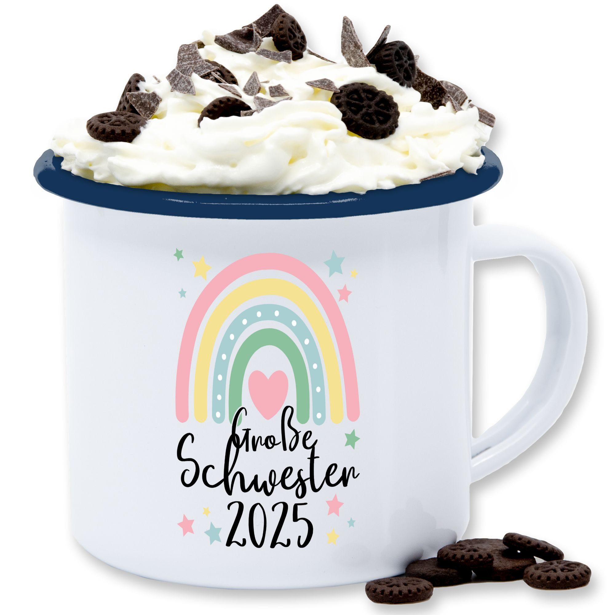 ECHTER HINGUCKER: Unsere Emaille Tasse ist weiß mit einem farblich abgesetzten Rand. Entscheide dich zwischen dem blau oder schwarz glasiertem Rand oder dem silbernen Metall-Rand